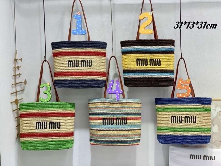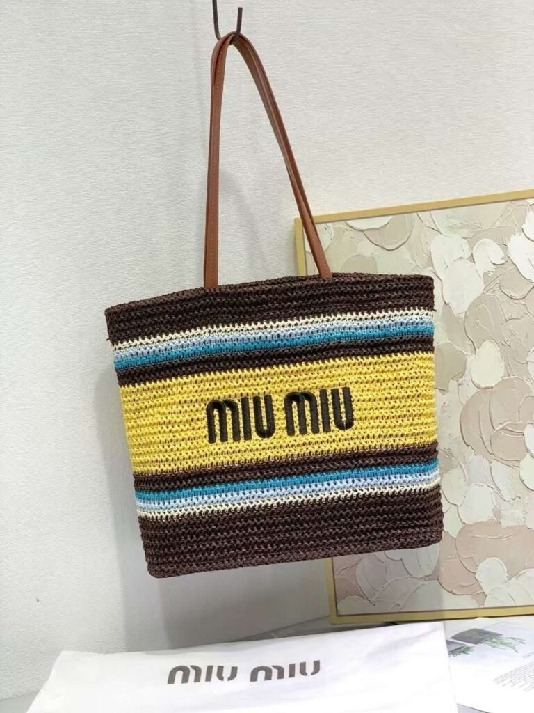 MIUMIU new straw bag striped stitching