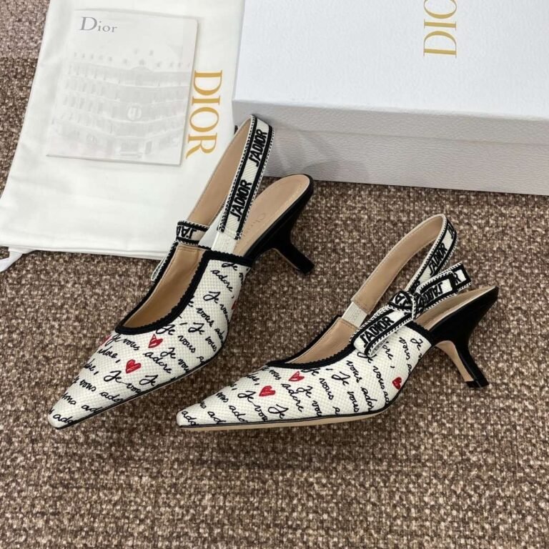 DIOR Web strap slingback sandals Jacquard embroidered letter logo high heel bowknot color matching women’s shoes