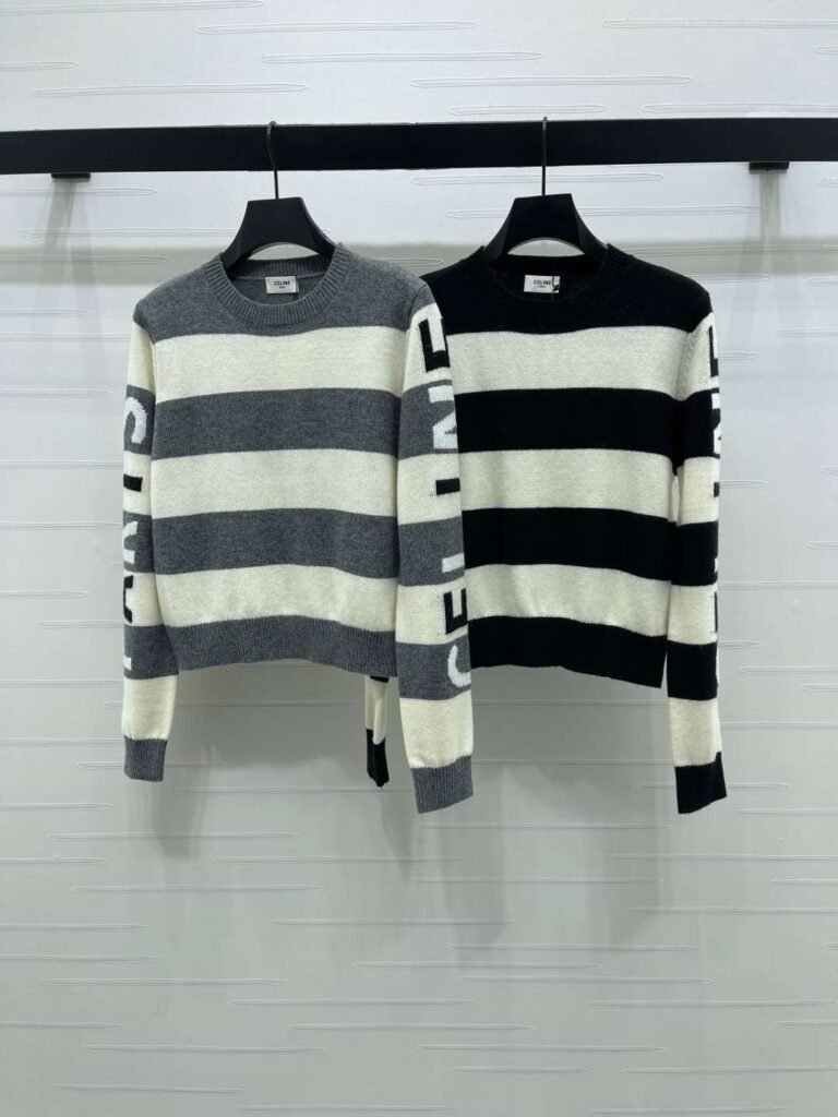 Celine Fall/Winter Striped Letter Knit Sweater, 30% Cashmere, 70% Wool Premium Sweater