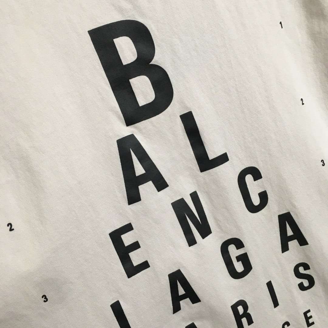 Be the first to review “Balenciaga distressed-style T-shirt with eye chart letter print and loose fit.” Cancel reply