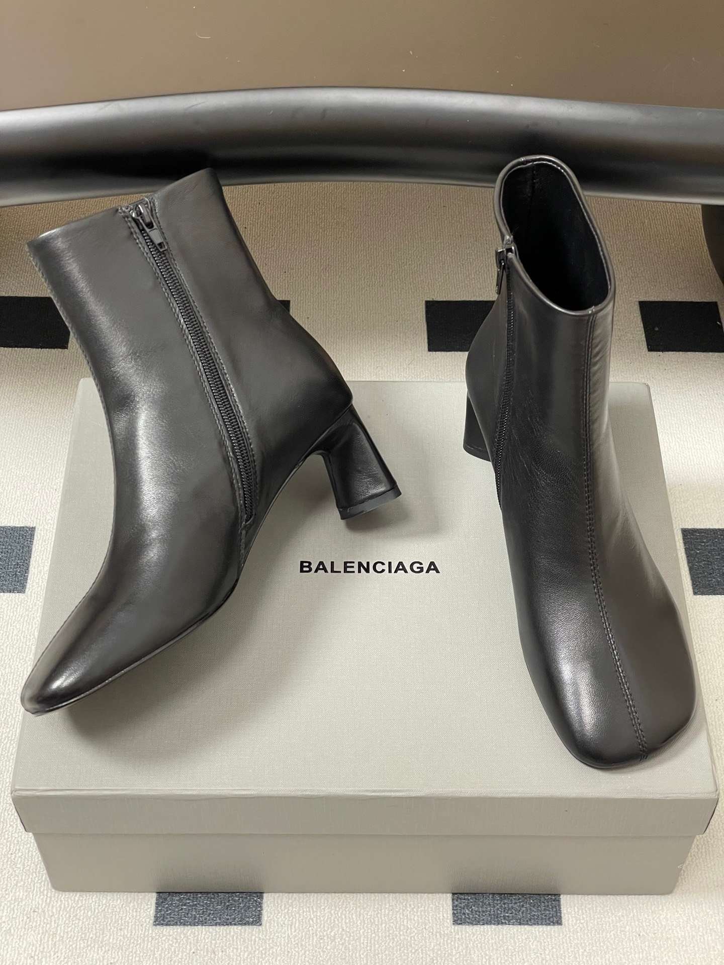 Balenciaga runway style square-toe ankle boots, premium version made of sheepskin leather.Heel height: 6.5cm