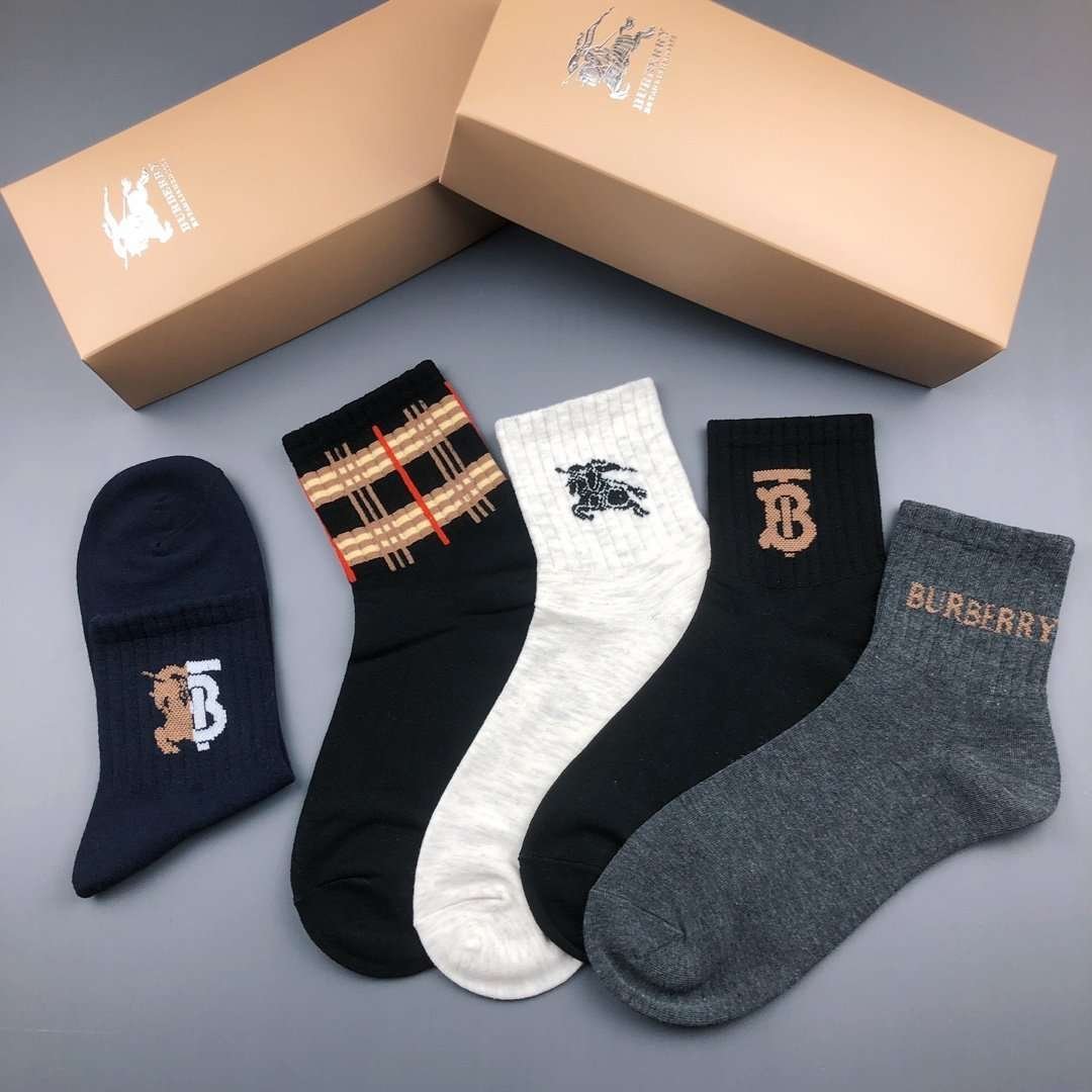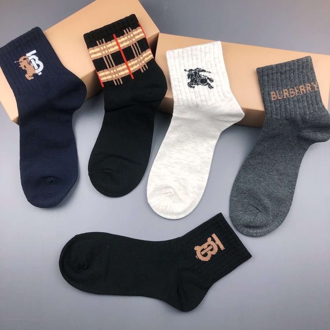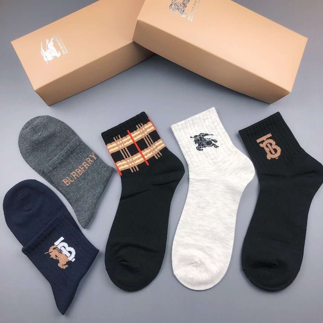 Burberry pure cotton socks for men and women, 5 pairs per box