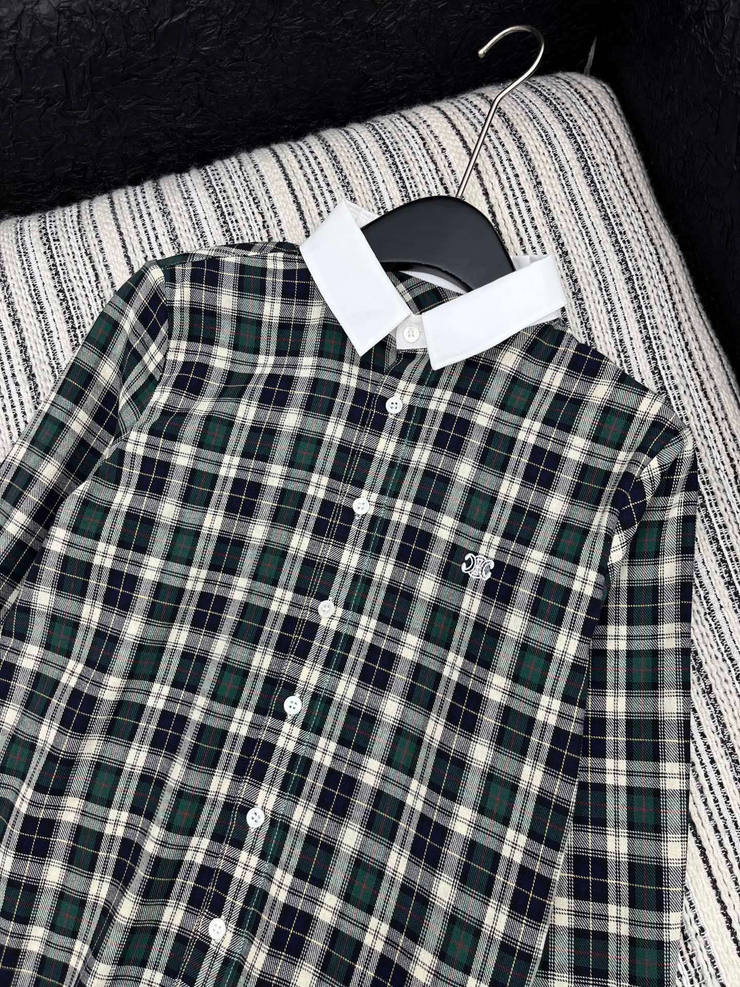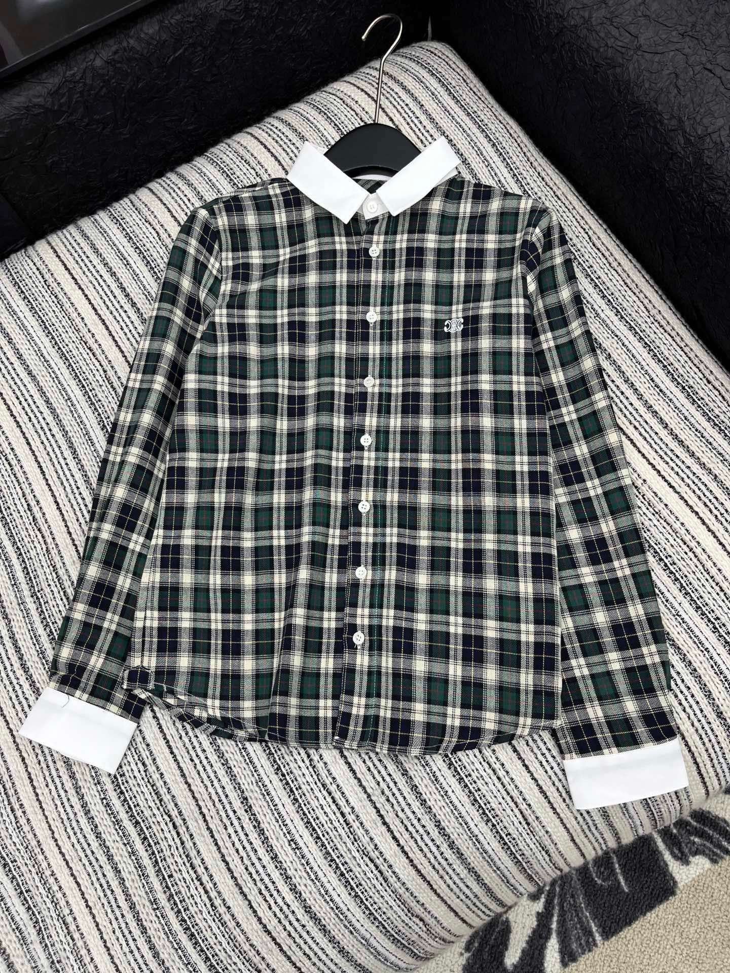 Celine 2025 Early Autumn Plaid Lapel Embroidered Shirt High Quality Clothes