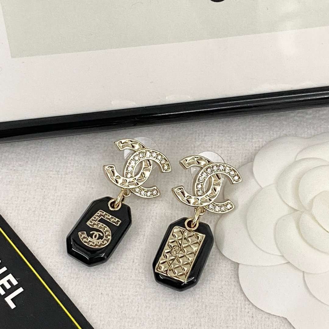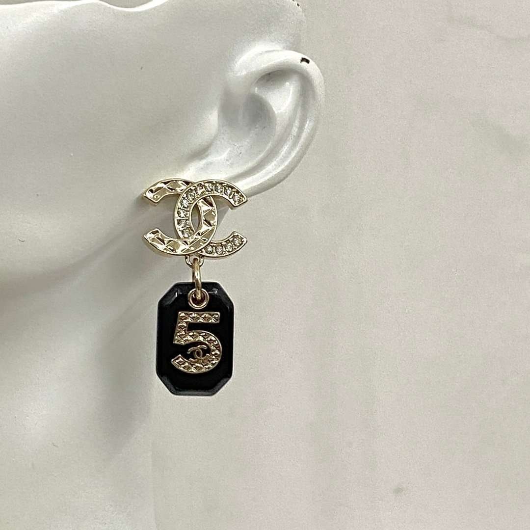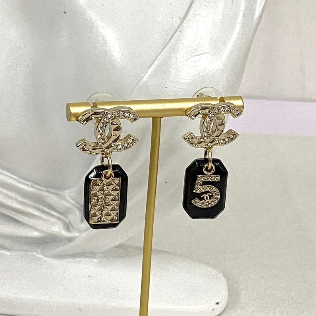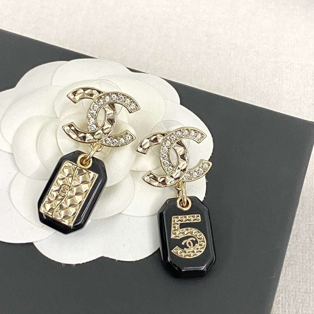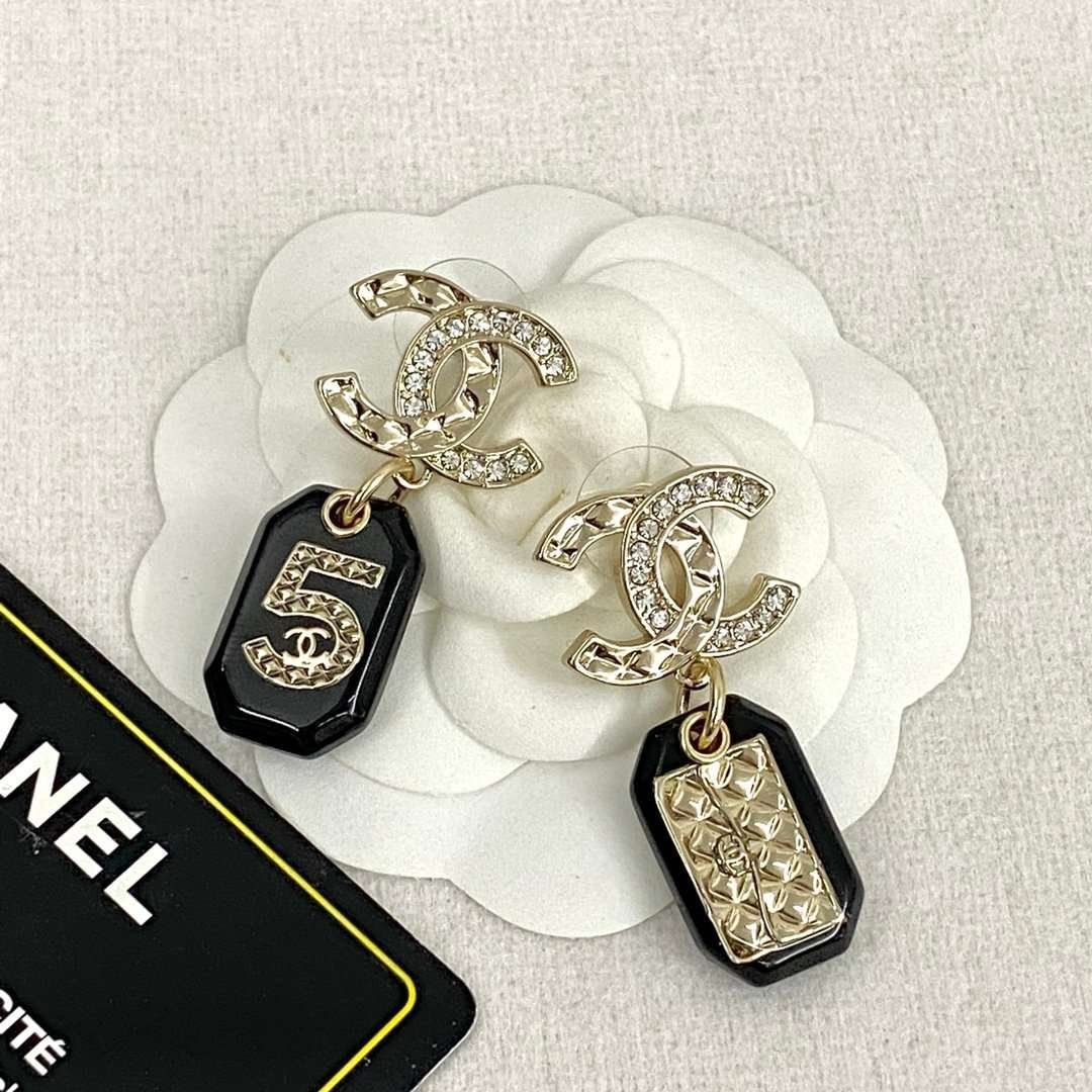 CHAN 23 Black resin 5-shaped bag ear studs