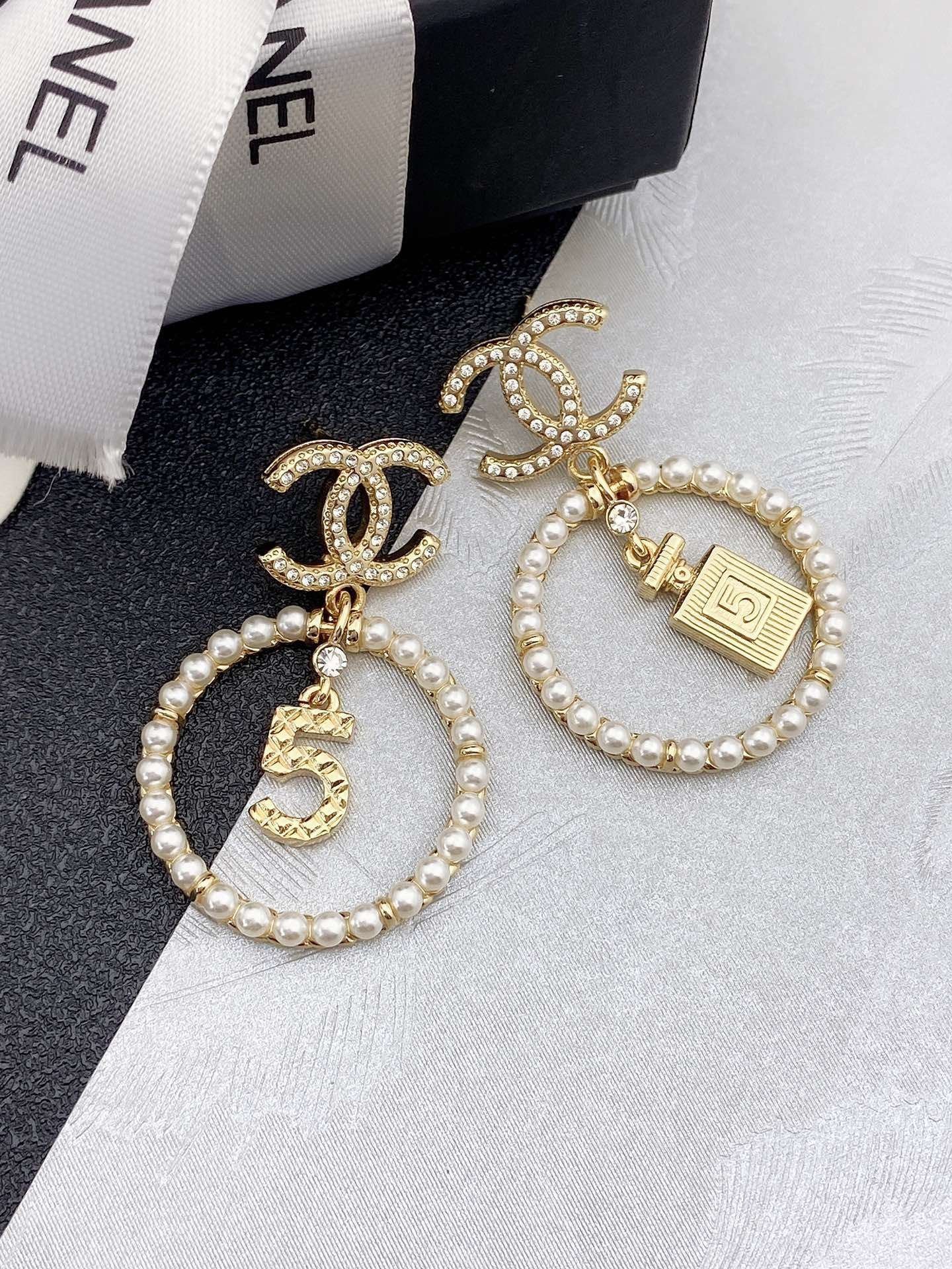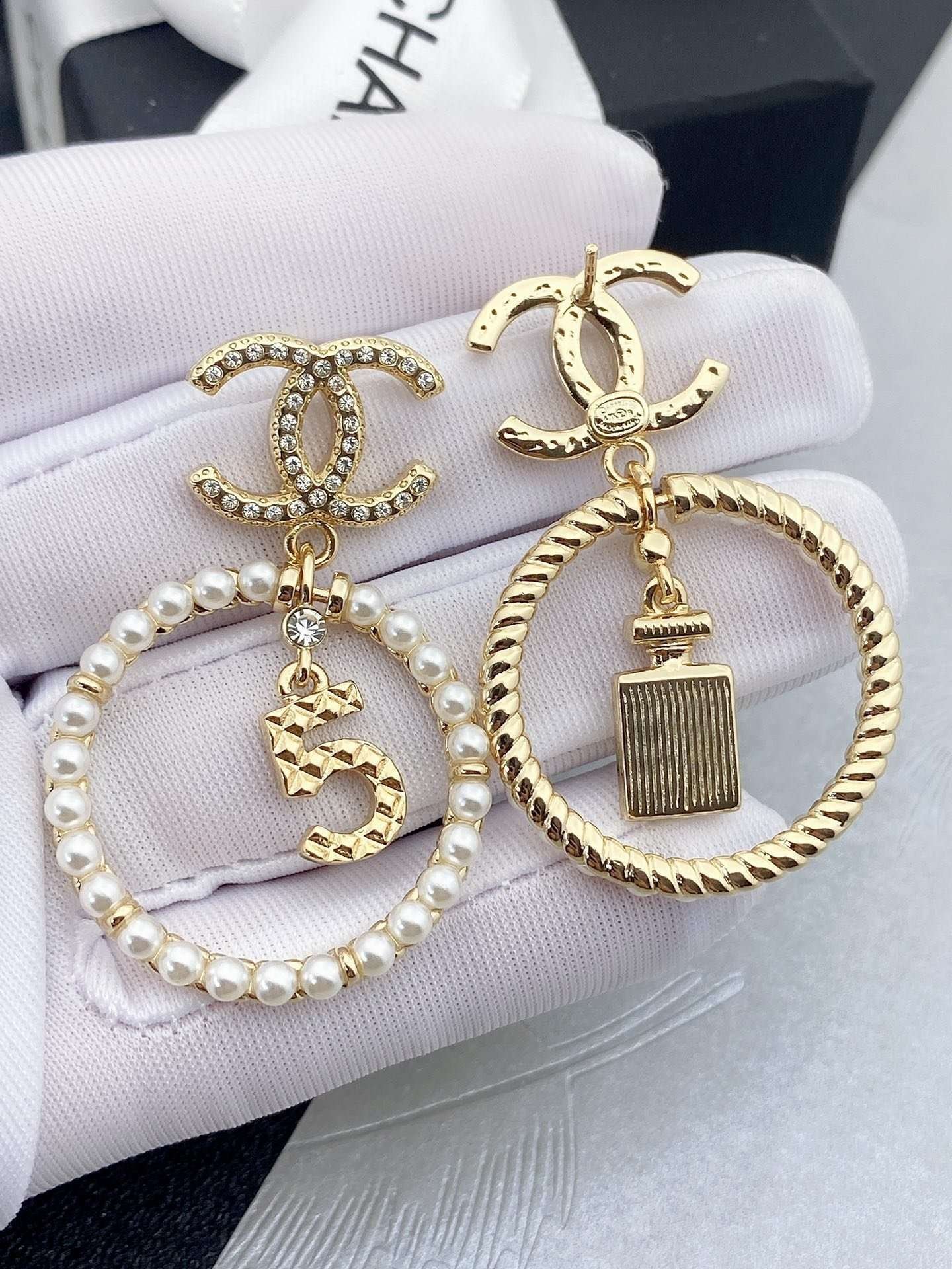 Be the first to review “CHANEL 5-letter perfume bottle with double c stud earrings” Cancel reply