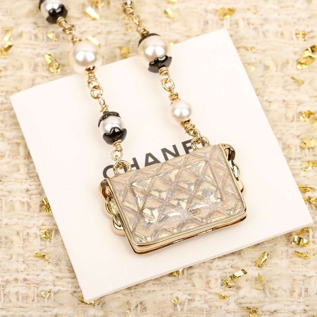 Chanel Black lace bag necklace