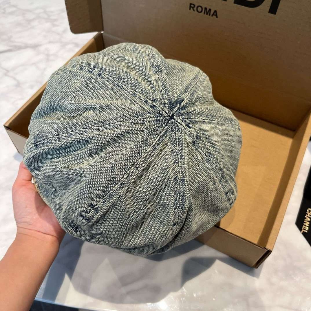 Chanel Denim Duck Tongue Artist hat 57cm