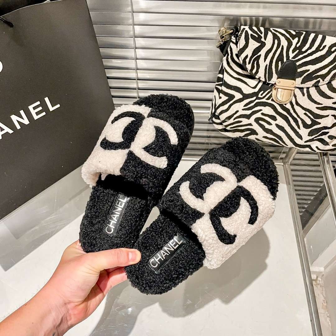 Chanel flat plush slippers
