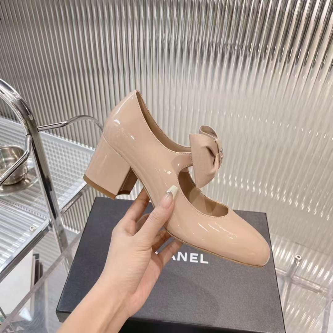 Chanel’s new early spring bow Mary Jane shoes Calf patent leather material