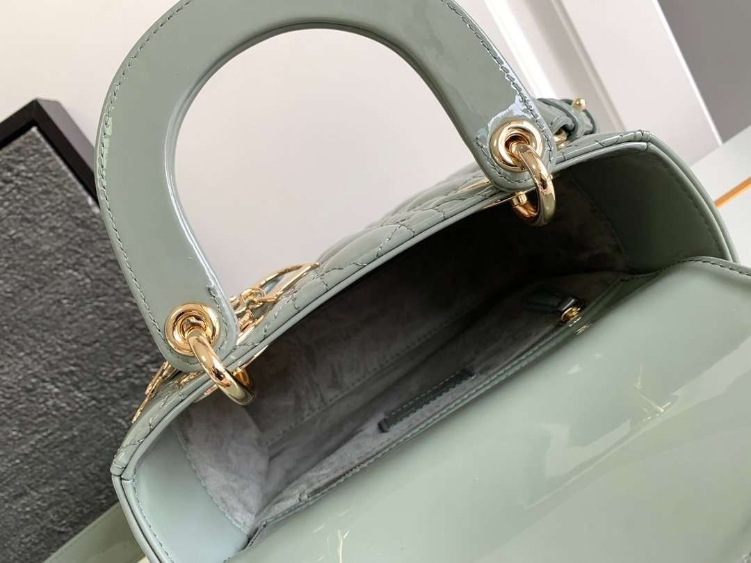 DIOR Cowhide patent leather Lady Diana handbag high-end version1:1 size 20x17x8cm