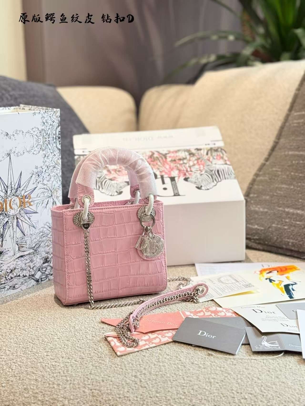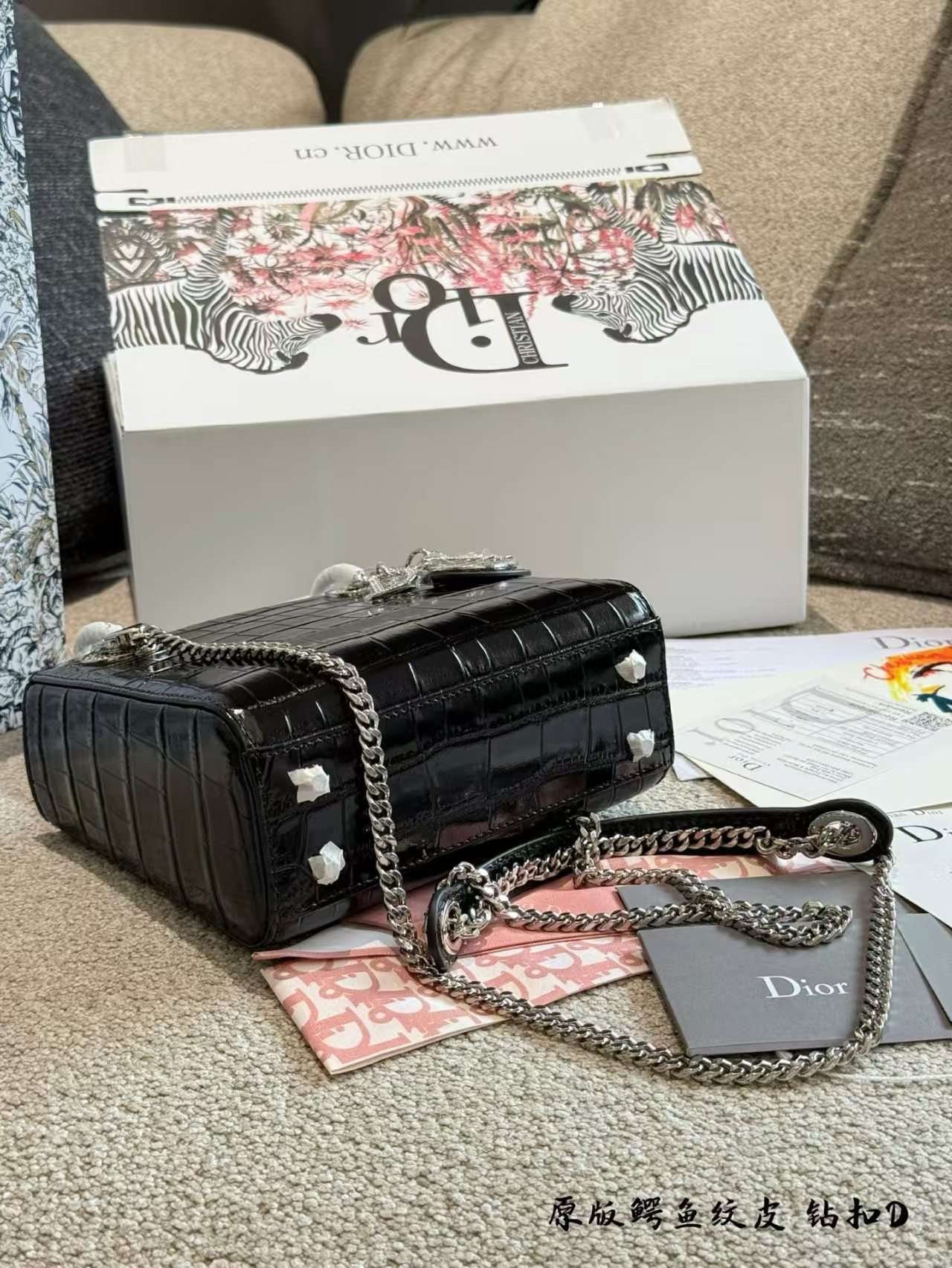 Dior handbag with crocodile leather texture