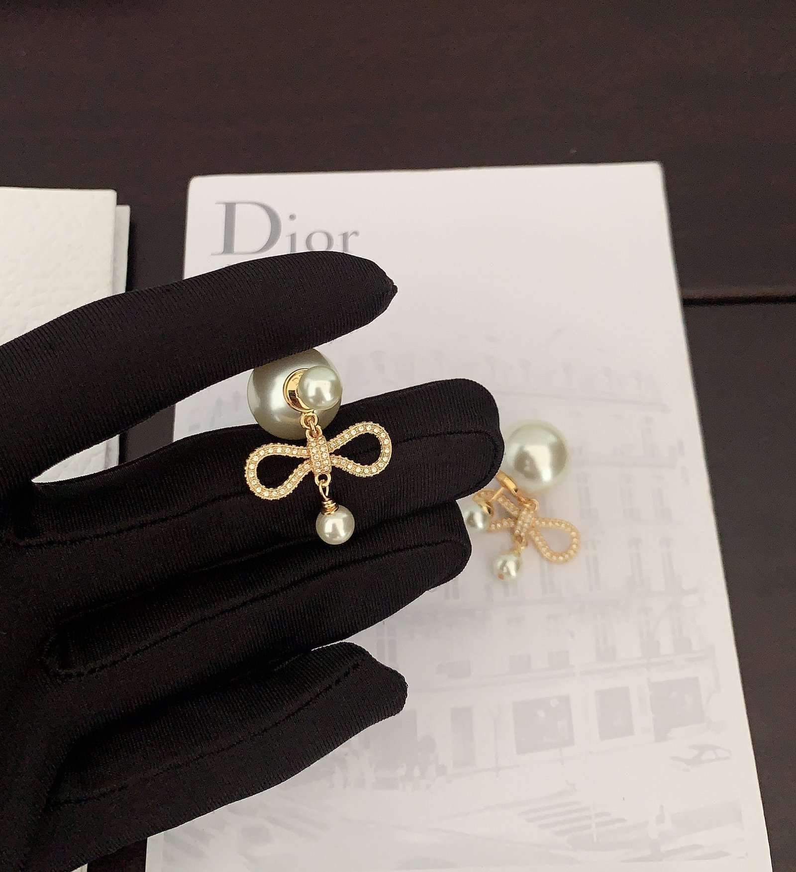 DIOR Pearl Bow Earrings Premium Edition