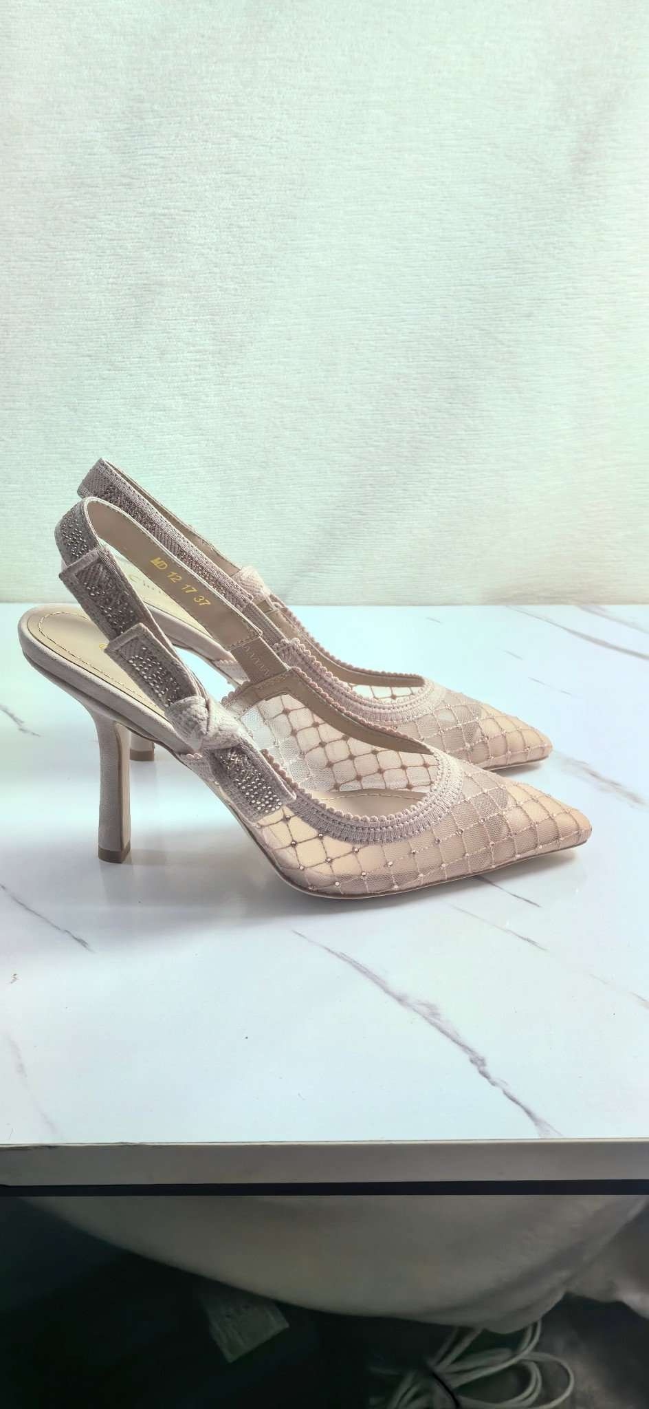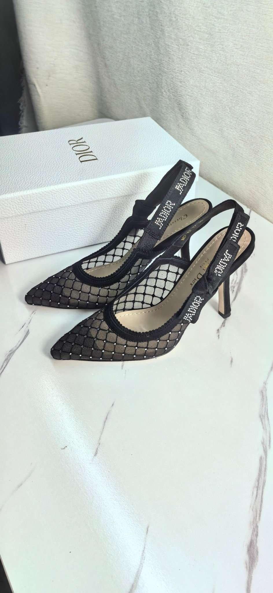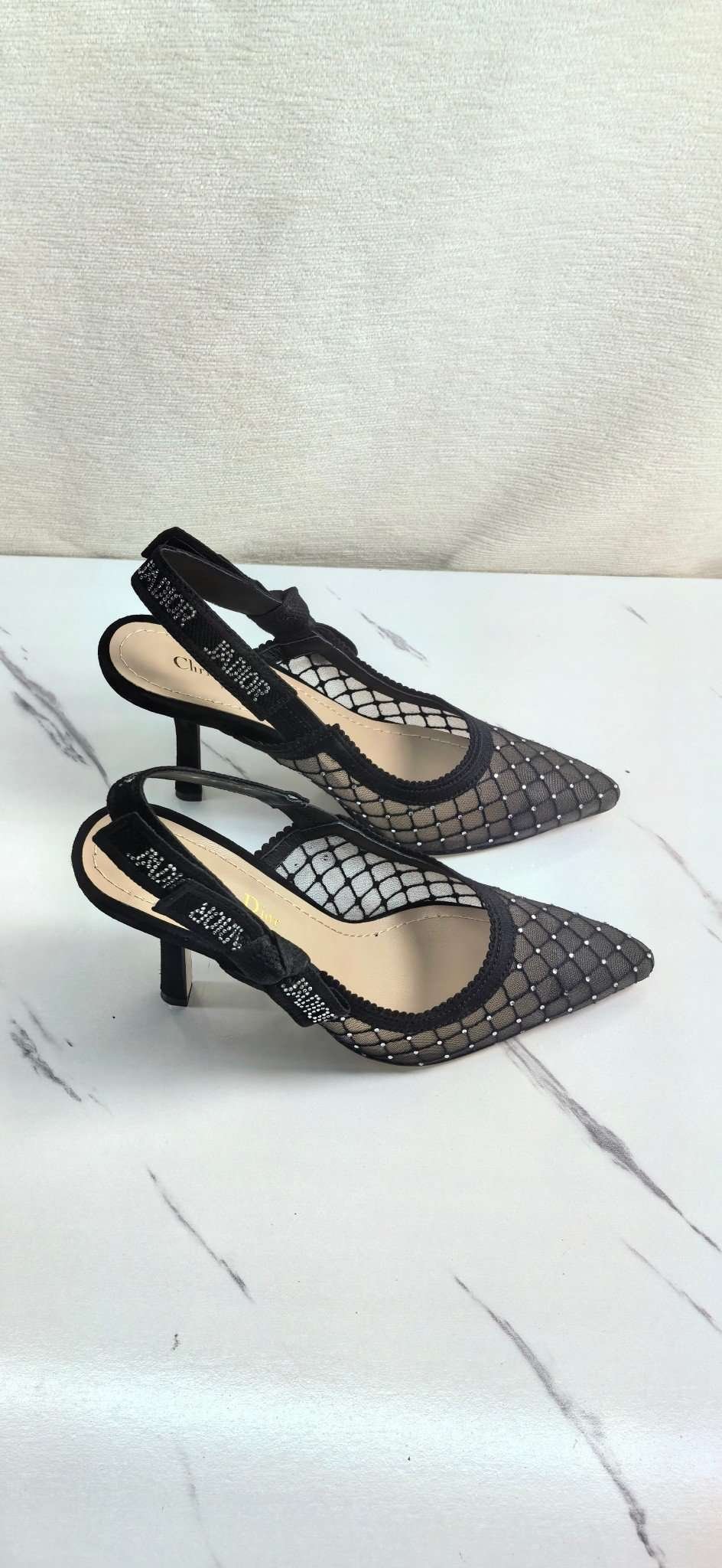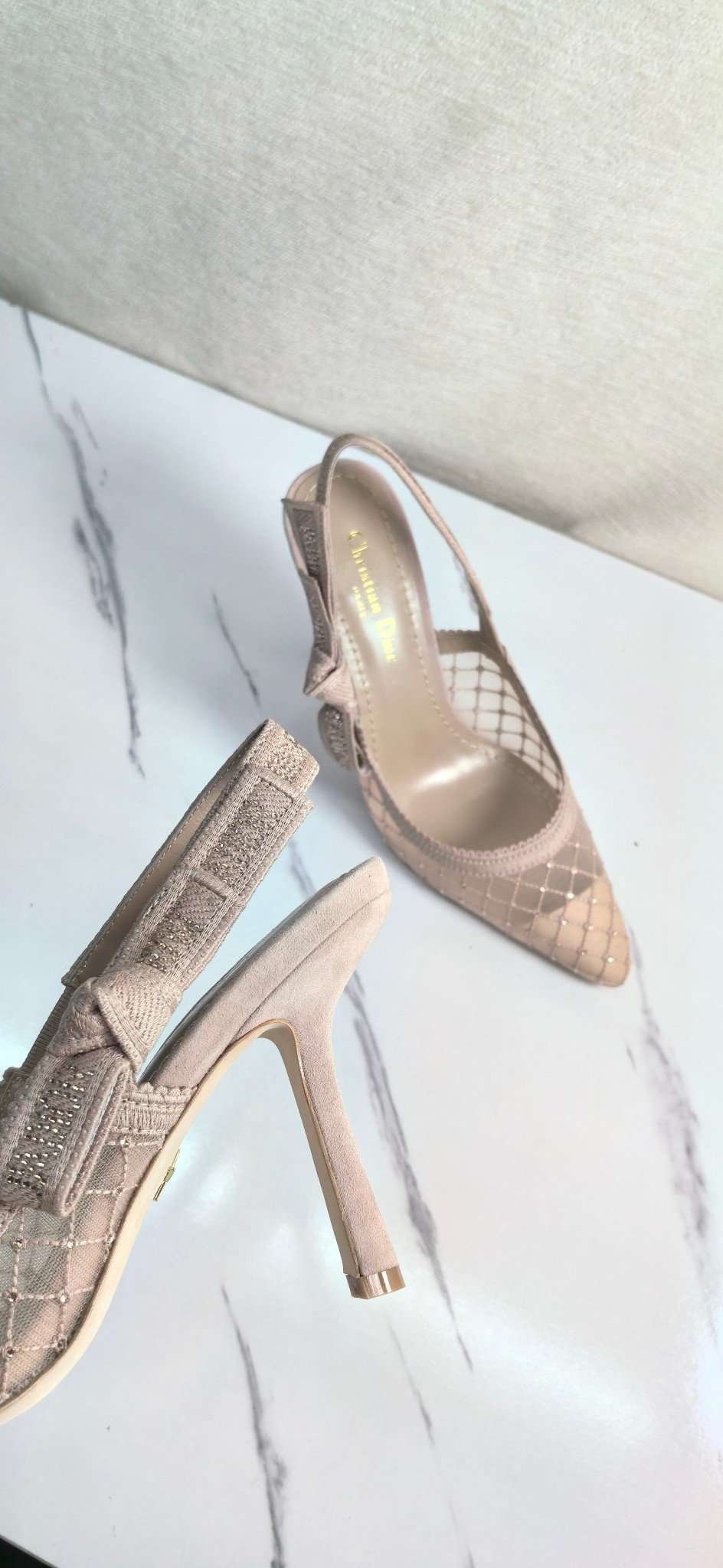 Be the first to review “DIOR Web strap slingback sandals Jacquard embroidered letter logo high heel bowknot color matching women’s shoes” Cancel reply
