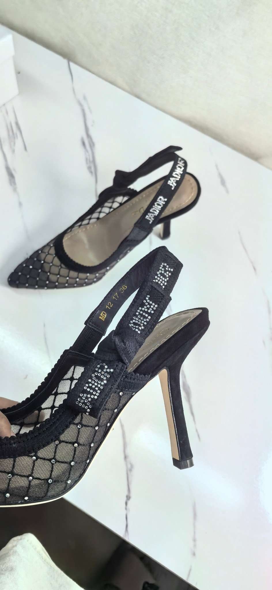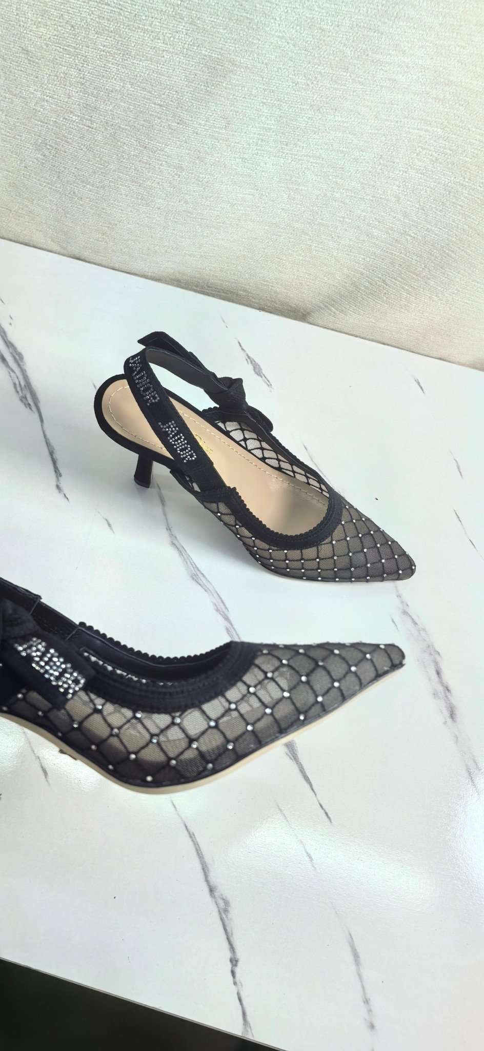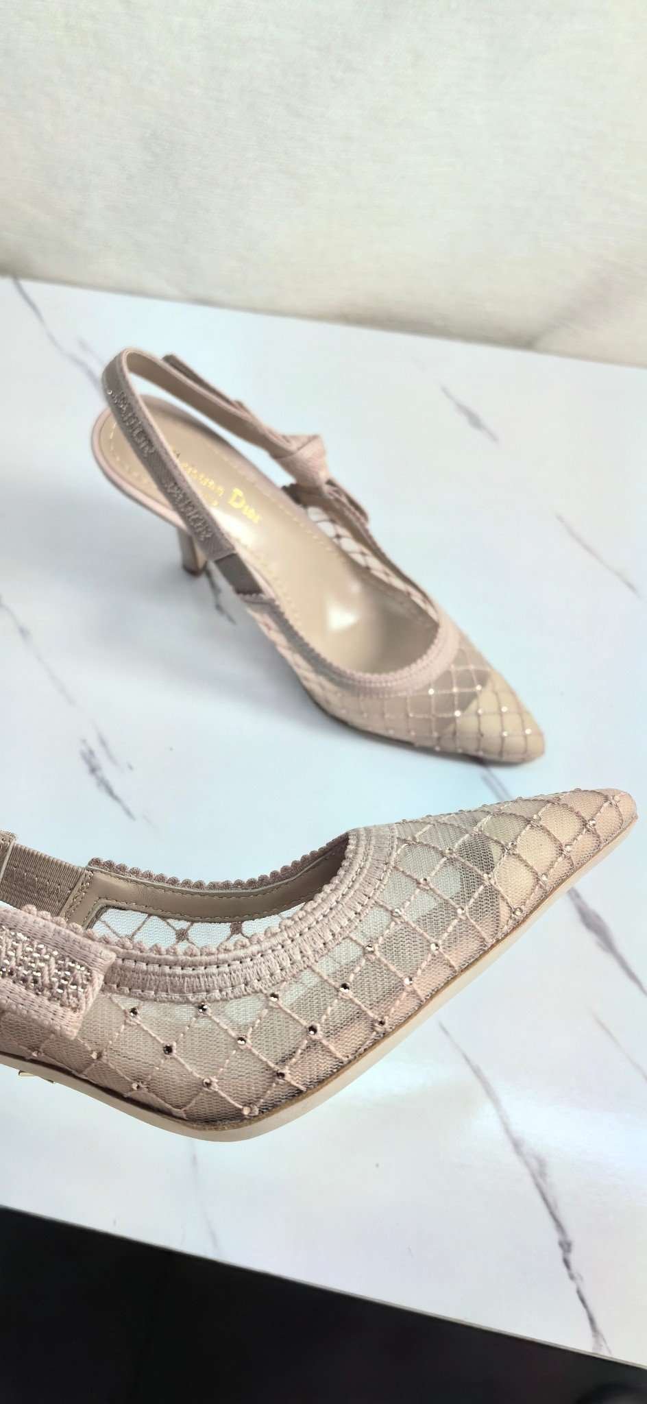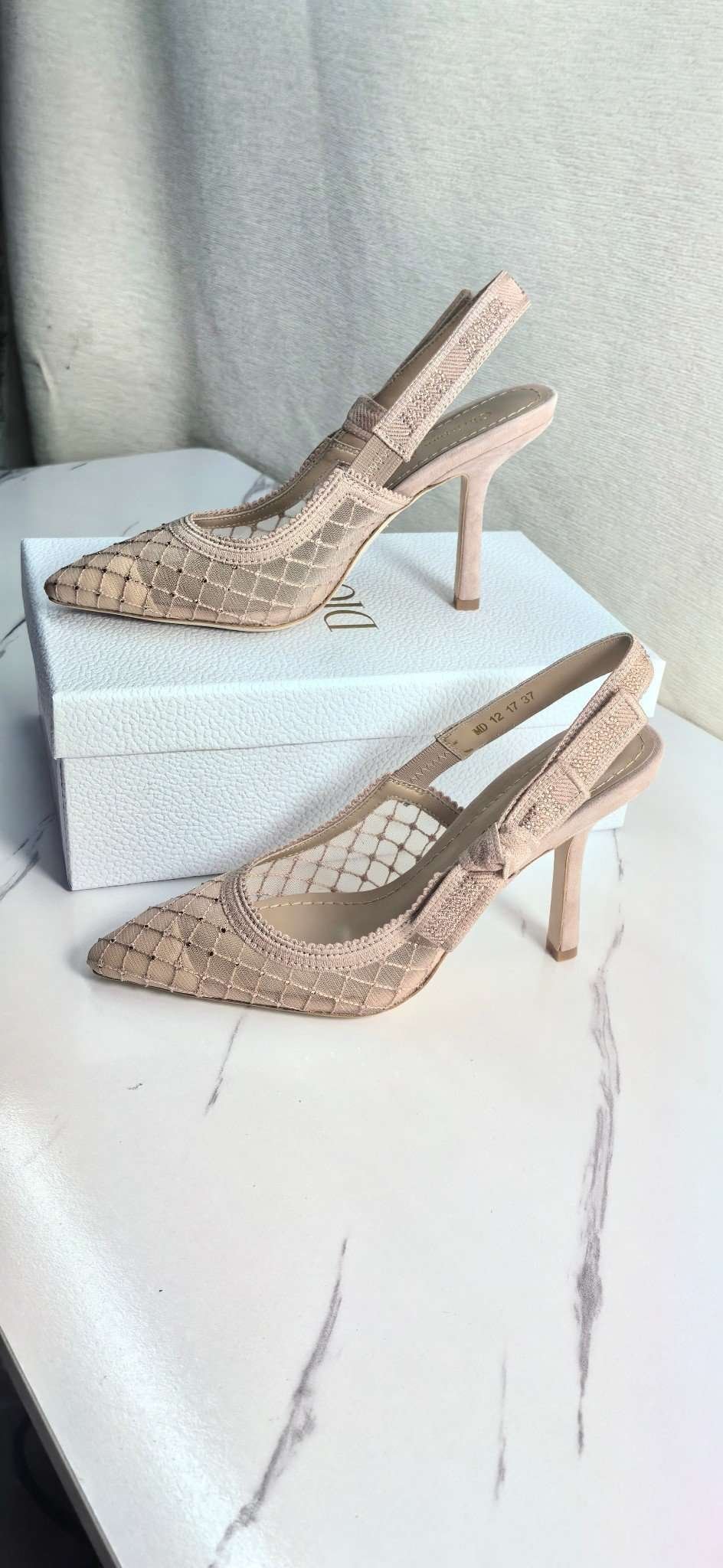 Be the first to review “DIOR Web strap slingback sandals Jacquard embroidered letter logo high heel bowknot color matching women’s shoes” Cancel reply