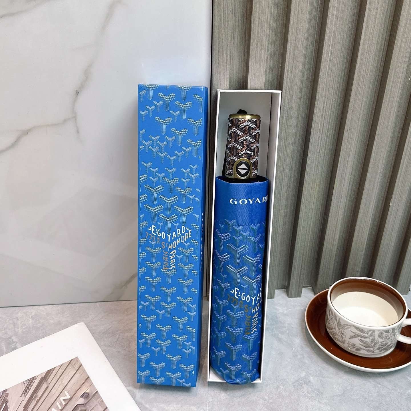 Be the first to review “Goyard tri-fold sun-protective umbrella has a black inner coating that effectively blocks 99% of UV rays.” Cancel reply