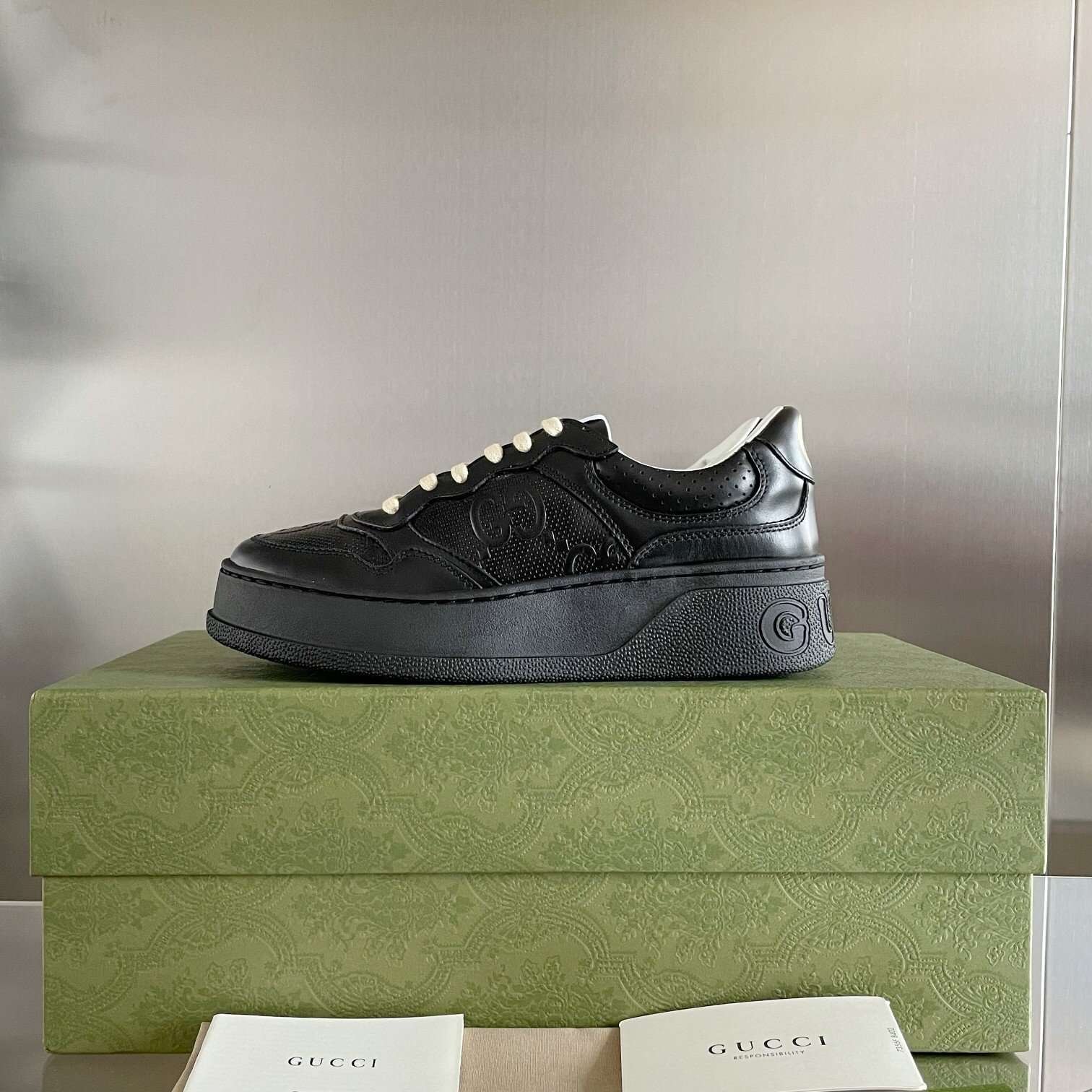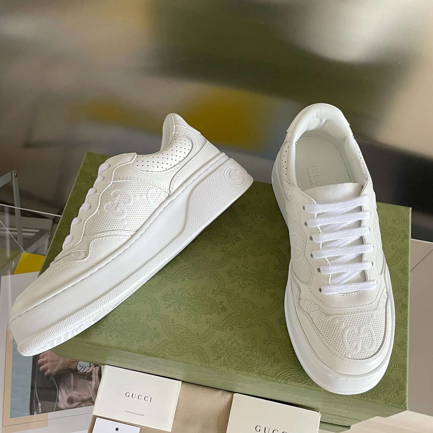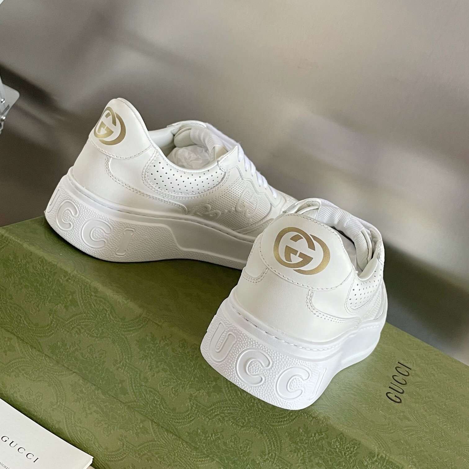 The brand’s classic ribbon elements are inspired by gucci’s equestrian roots. In each season, it is reinterpreted through a variety of new and chic designs and styles. It is presented in red and blue details on this leather and combines the three elements of small white shoes to deduce the design concept of the integration of sports and leisure advocated by the brand. The thick bottom design gives a retro feel and most importantly, it is very light
