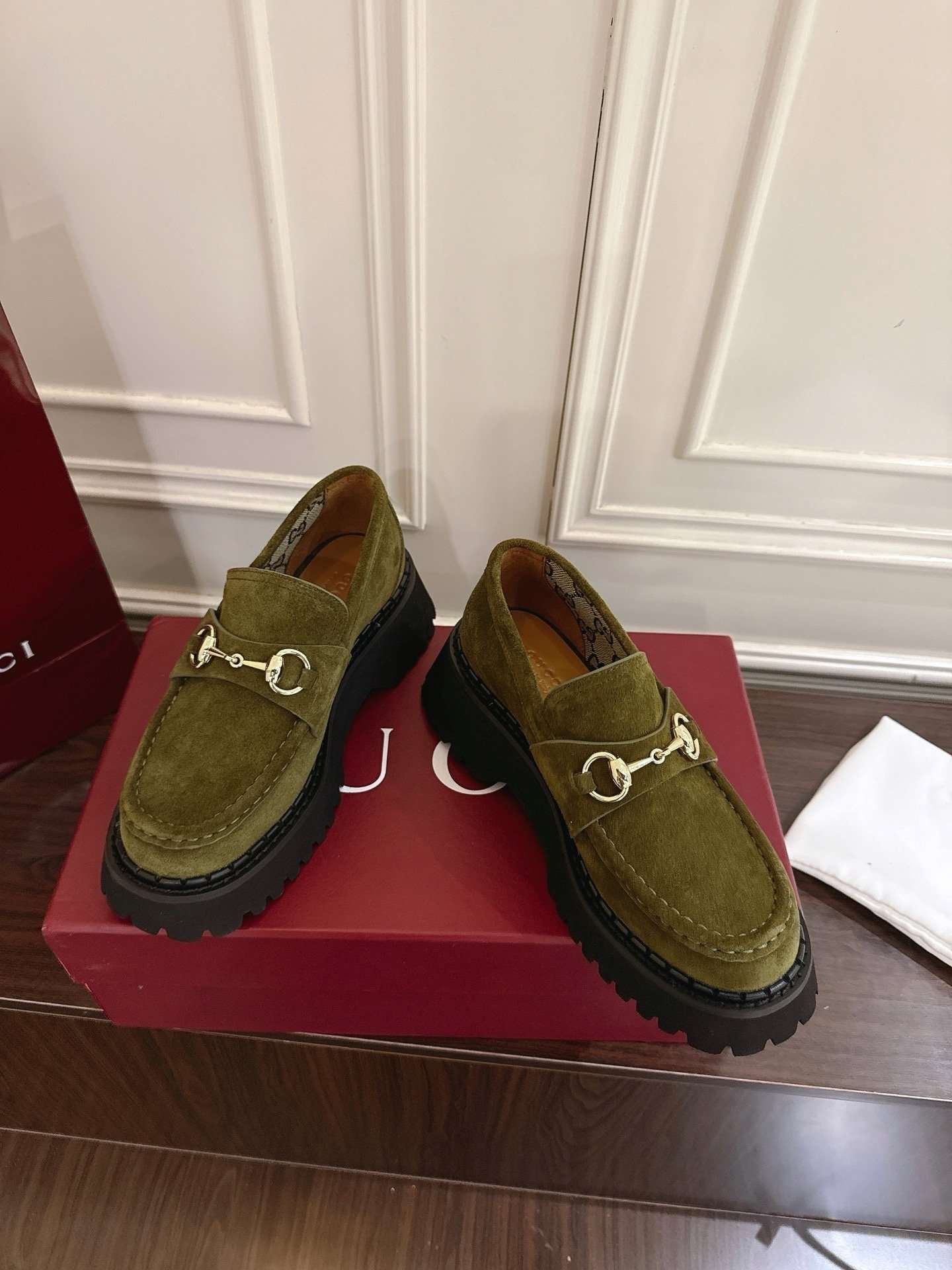 Be the first to review “Gucci Horsebit-decorated grooved-soled loafers with a 5cm thickness” Cancel reply