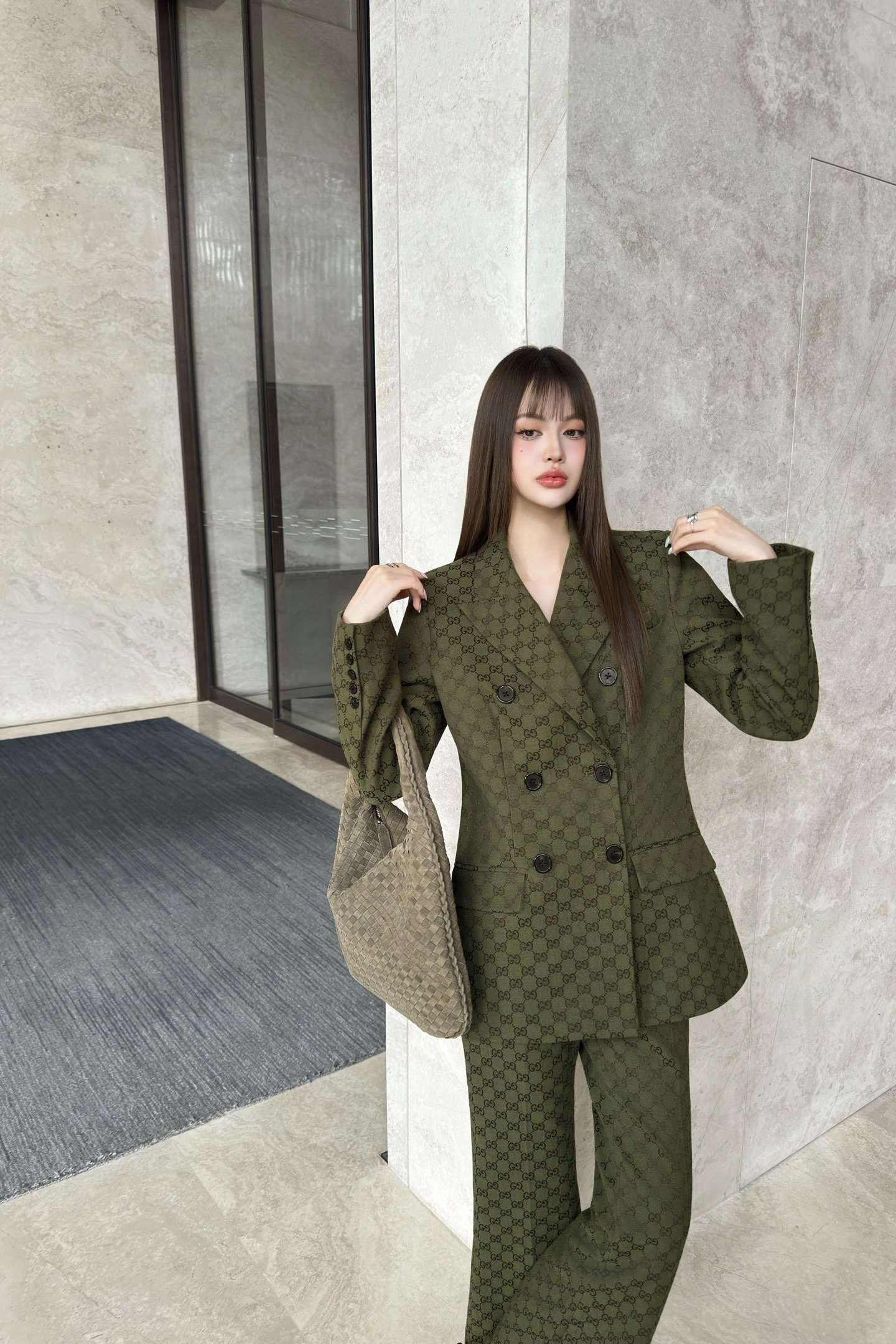 GUCCI series green jacquard suit jacket advanced handmade high-quality clothing