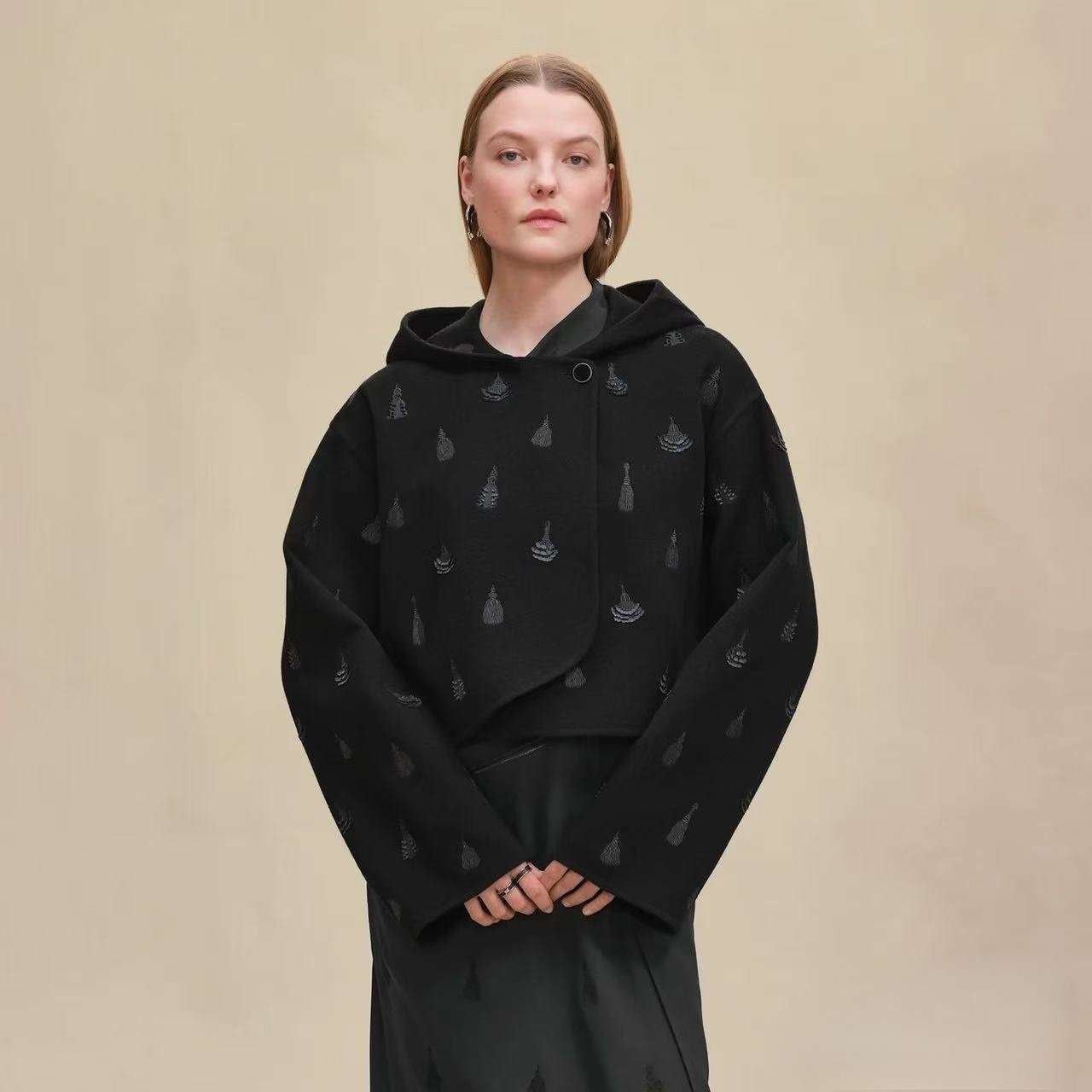 Hermès 2025 Autumn and Winter Series Hooded Double-faced Cashmere Short Jacket Double-faced Cashmere High-end Quality 1:1