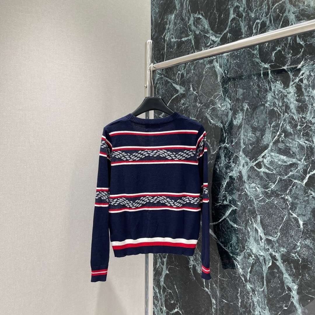 Hermès Early Autumn New Round Neck Knitted Long Sleeve Contrast Stripes Premium quality