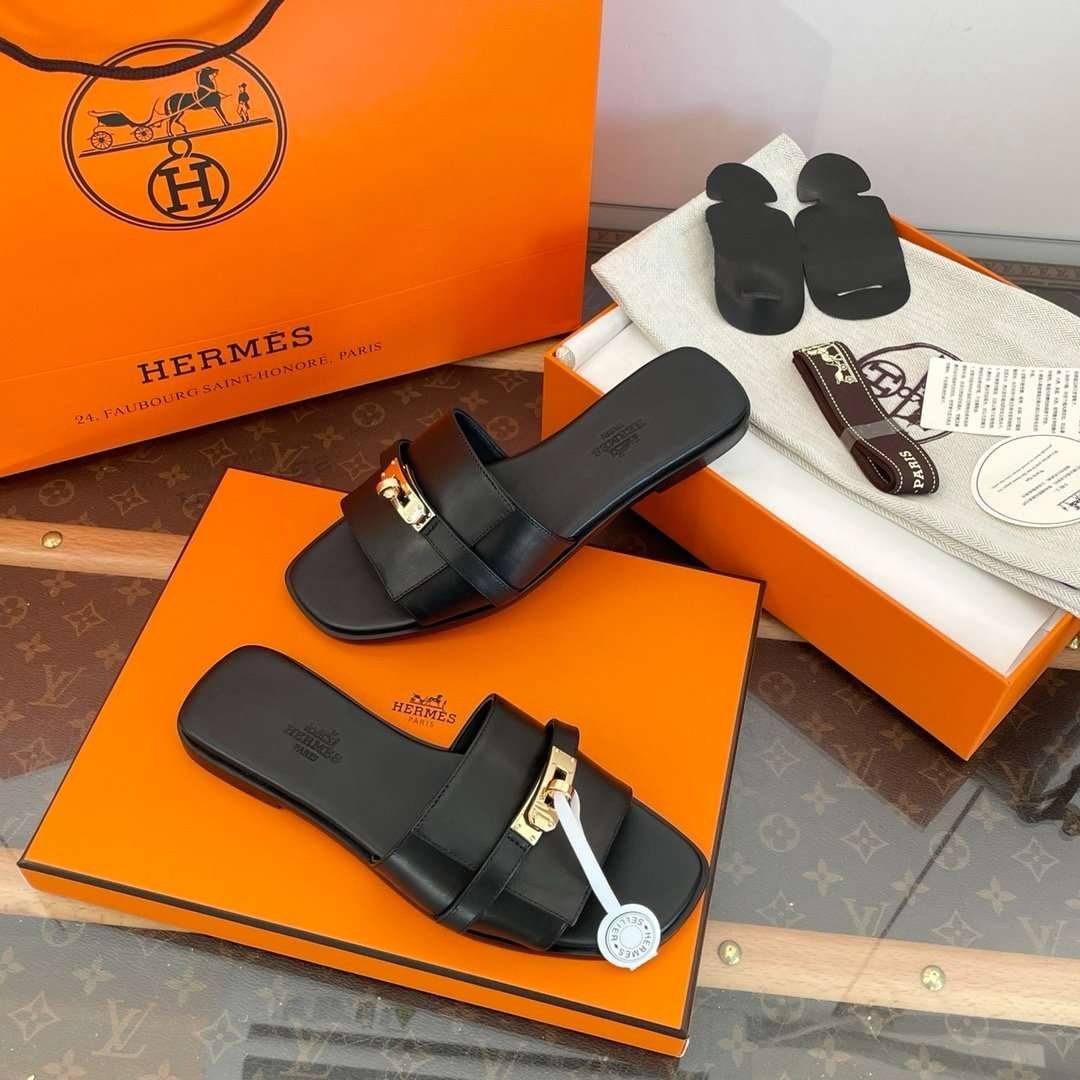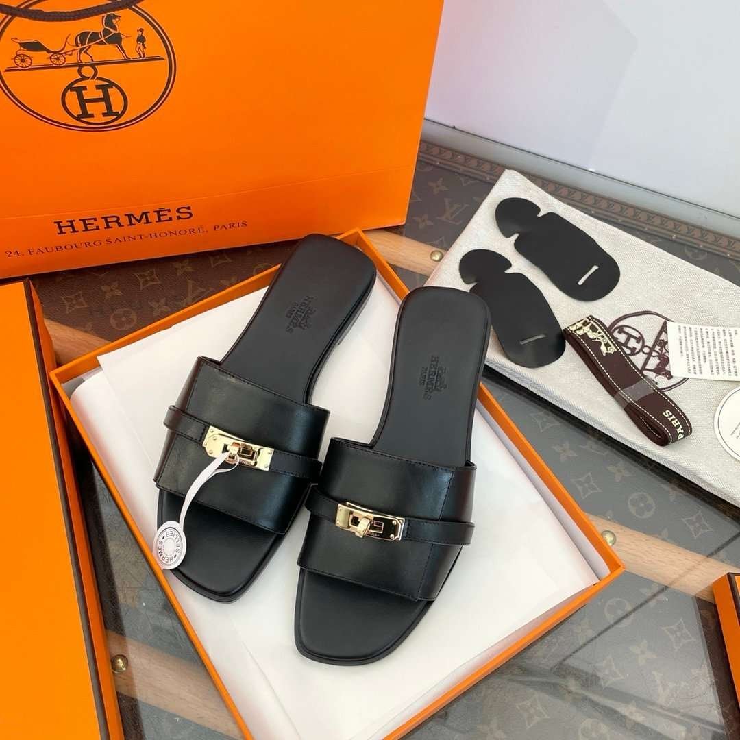 Hermès Kelly gold buckle slippers 1:1 version