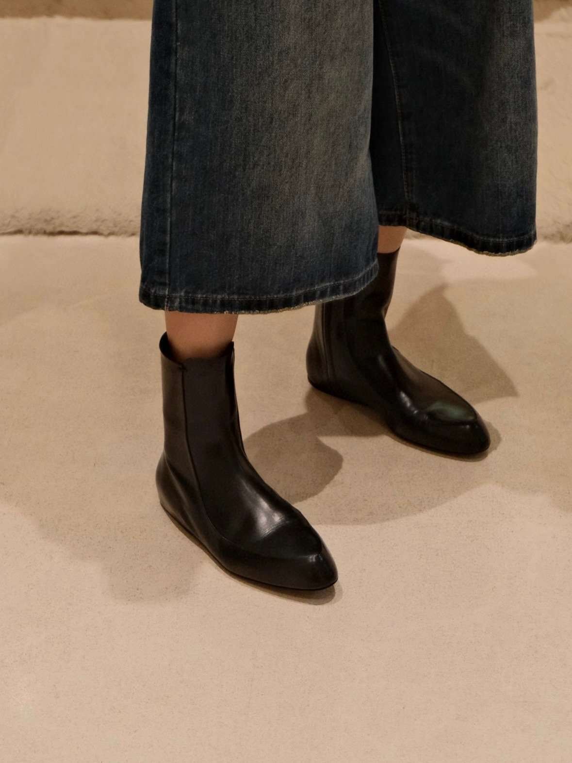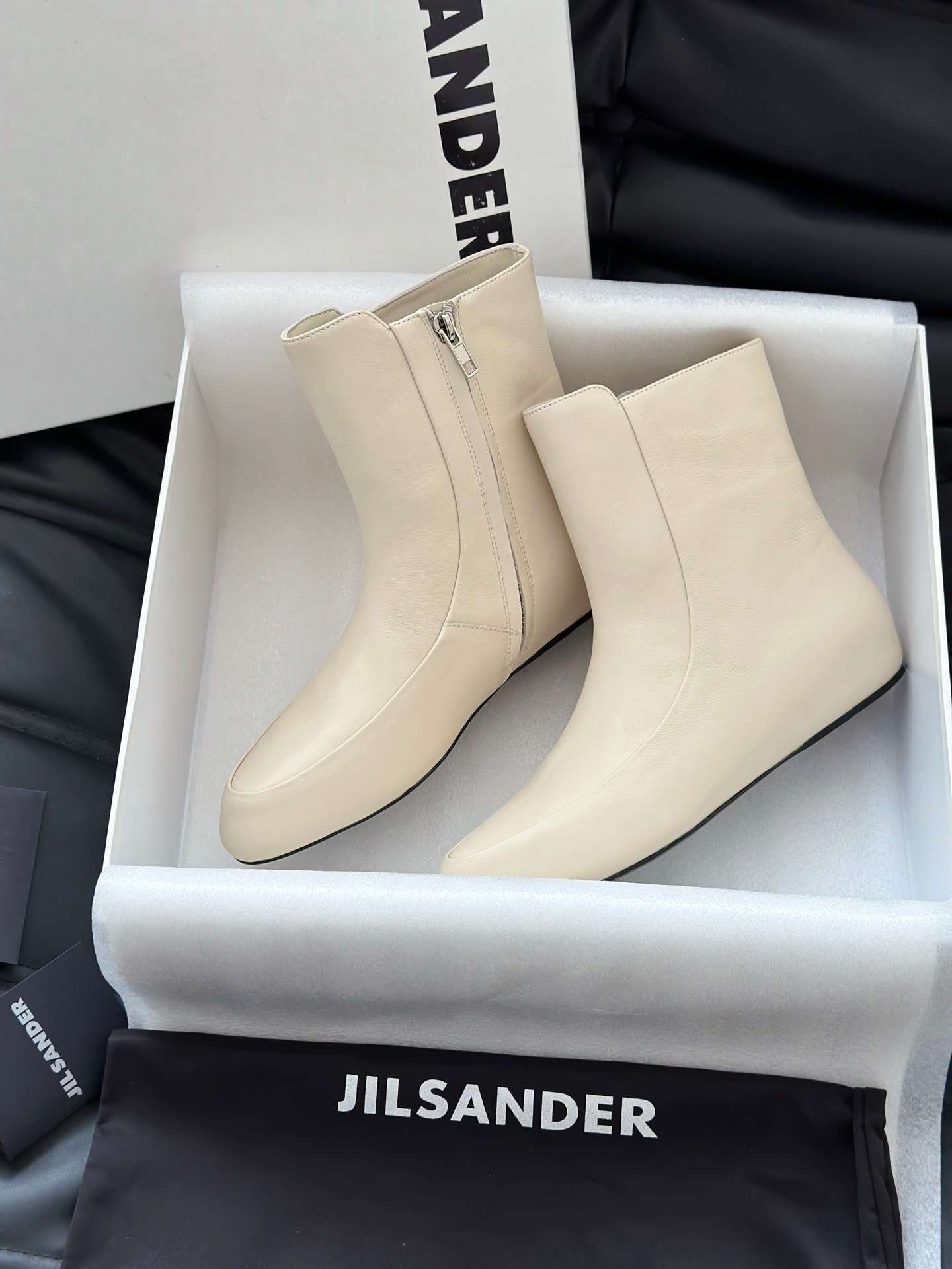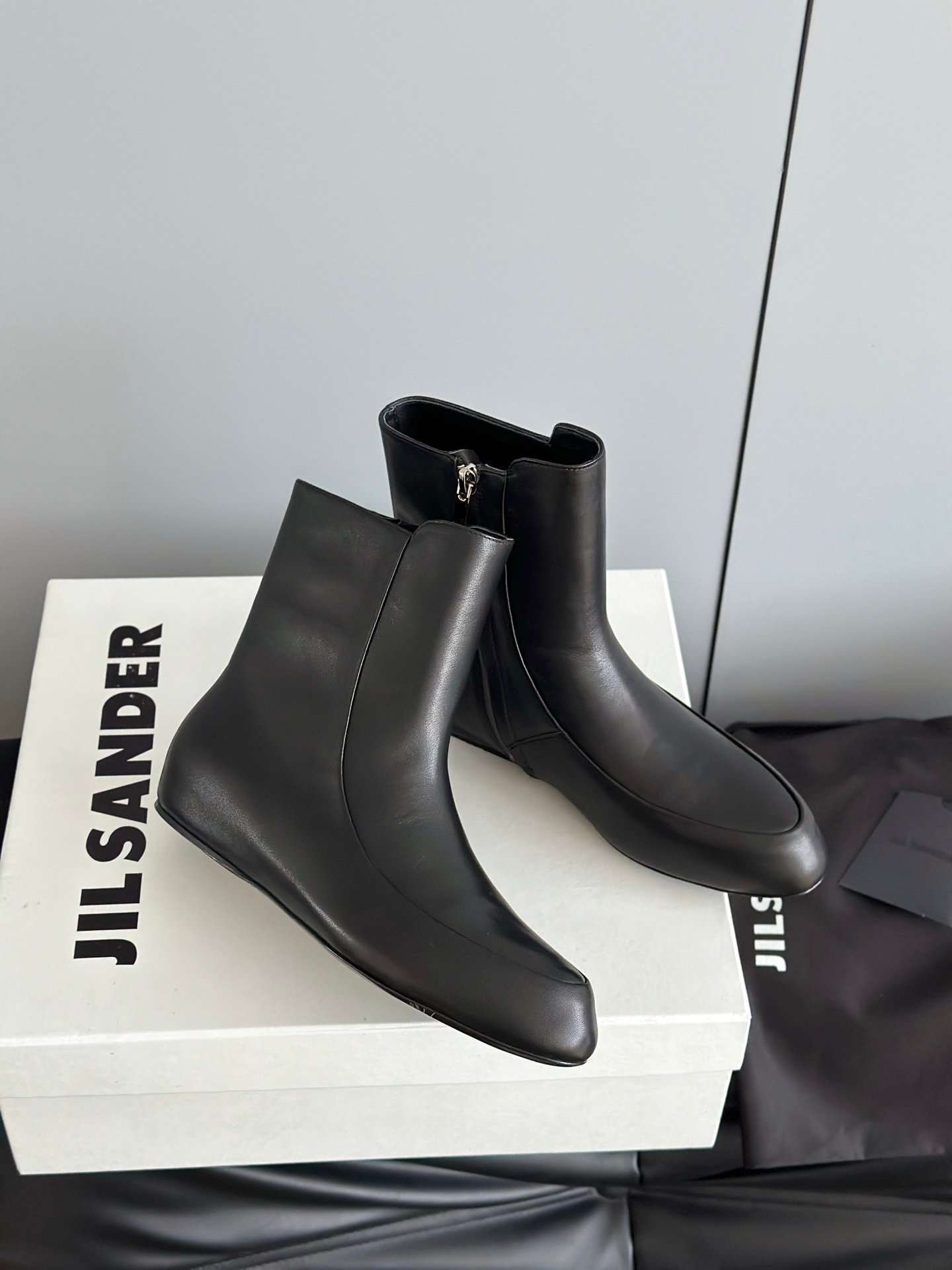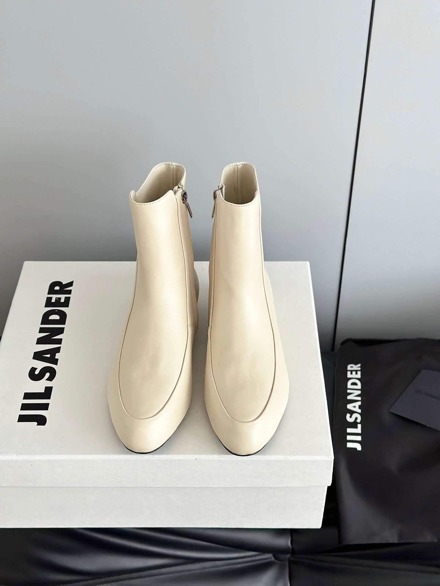 JIL SANDER New side zipper round toe ankle boots Chelsea granny boots Calfskin leather premium version 3.5cm higher inside