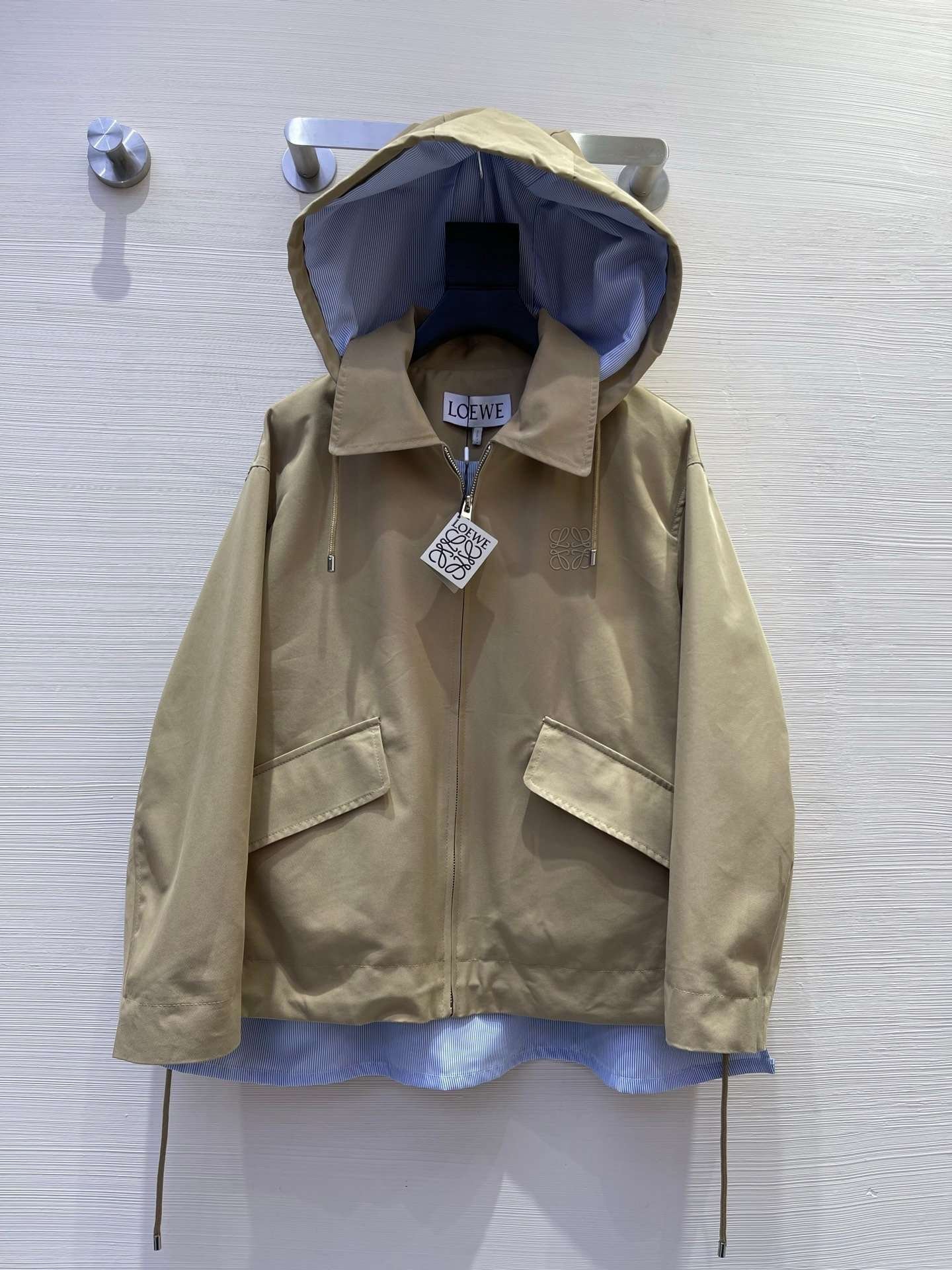 Be the first to review “Loewe striped patchwork hooded windbreaker jacket” Cancel reply