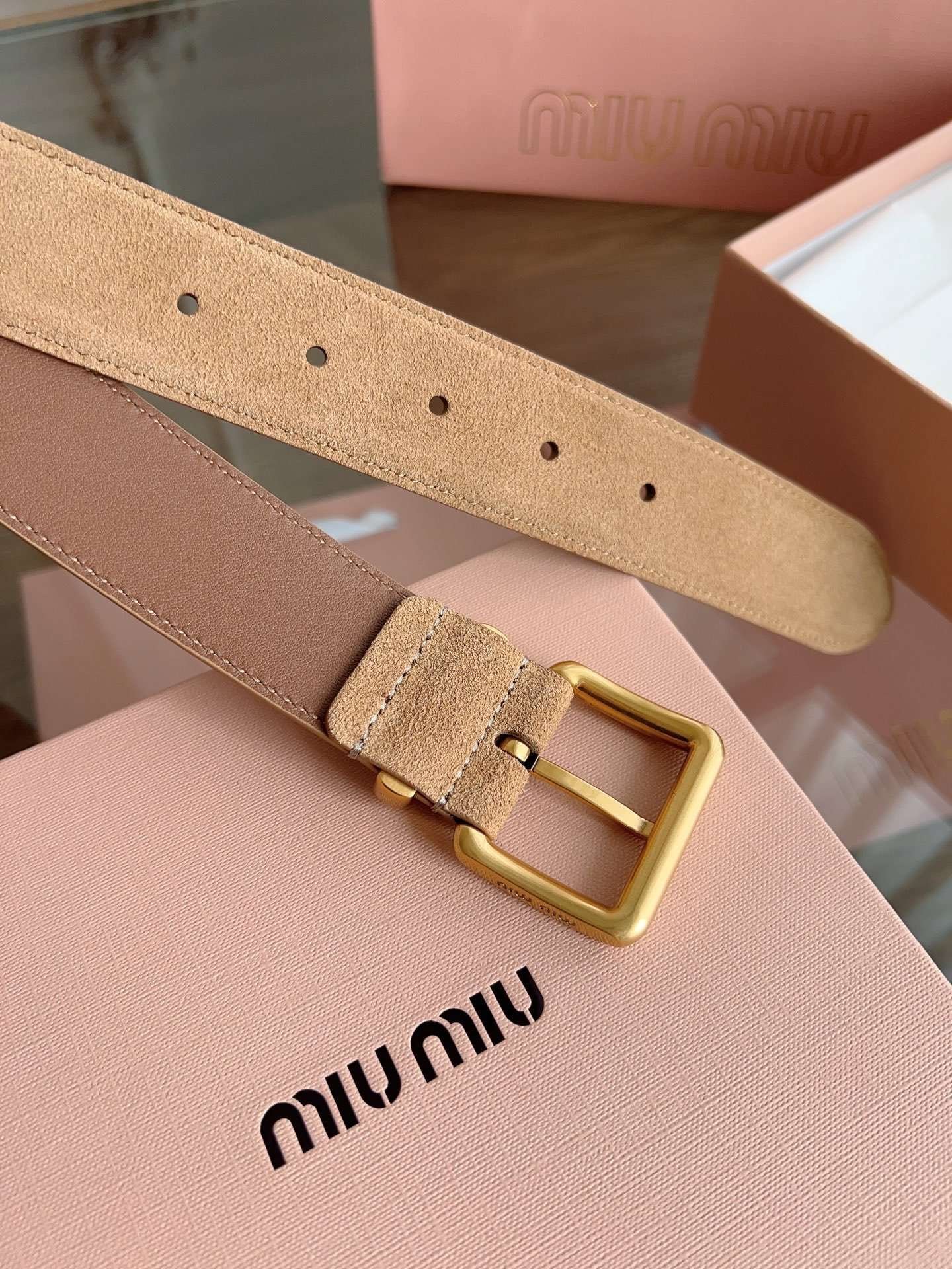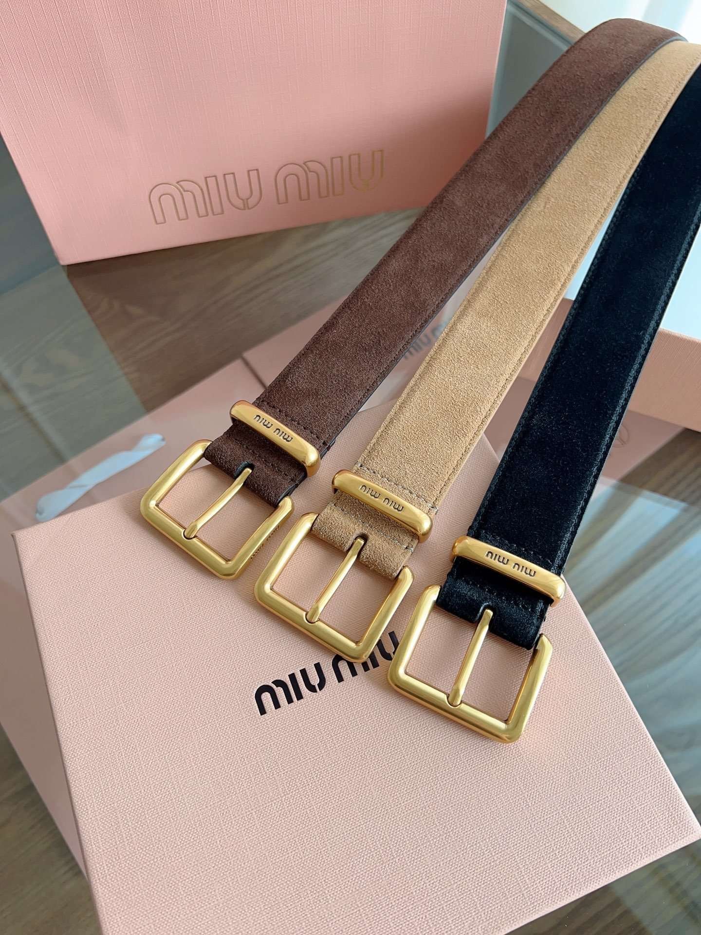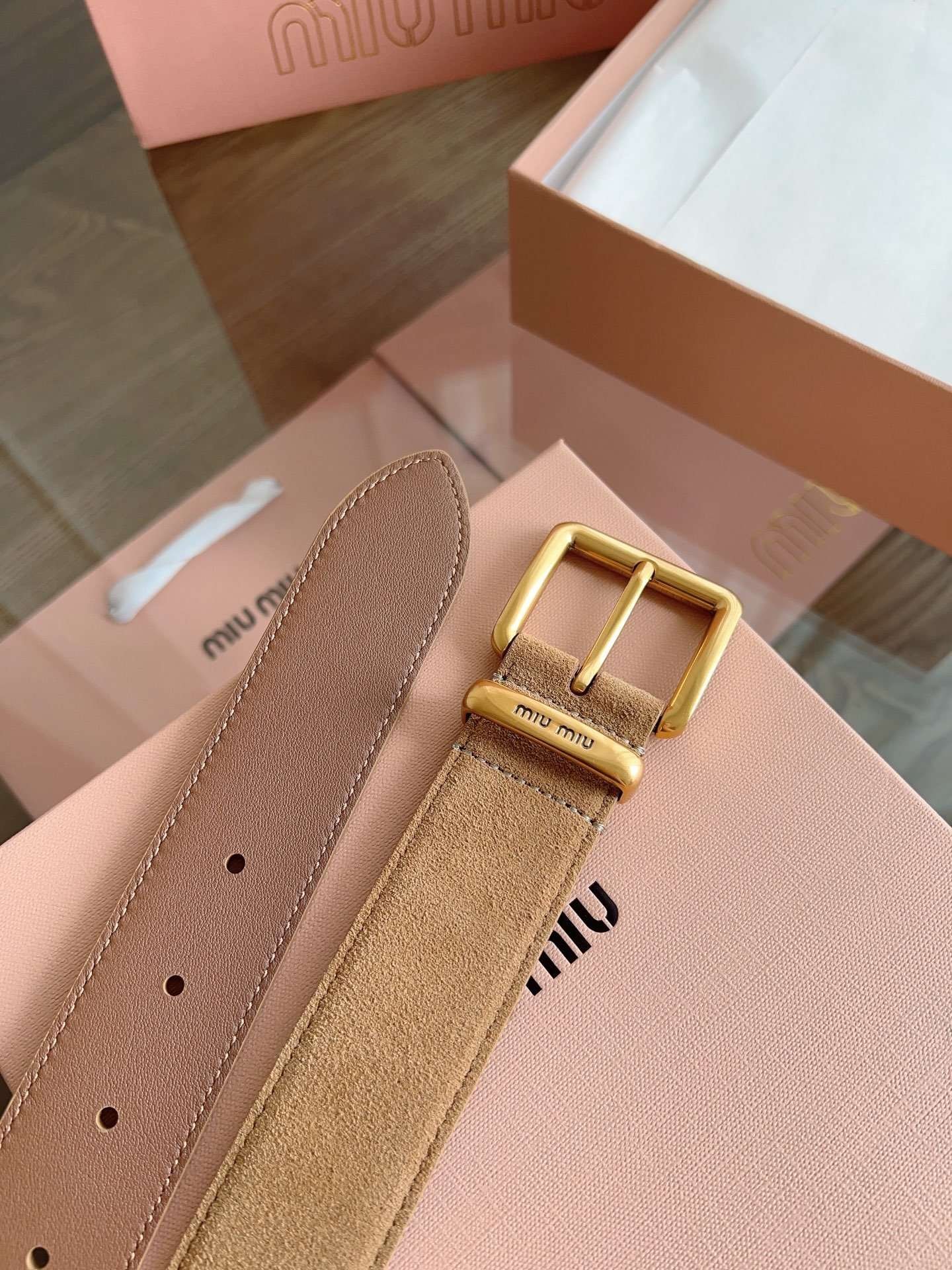 miumiu belt width 3.5cm double-sided suede calfskin material premium version