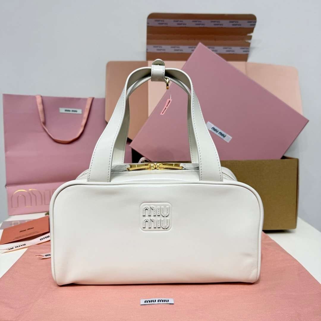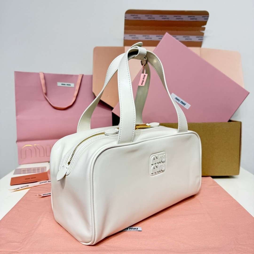 MIUMIU new underarm bowling bag made of soft calfskin material, high-end version, size: 28x15x13cm