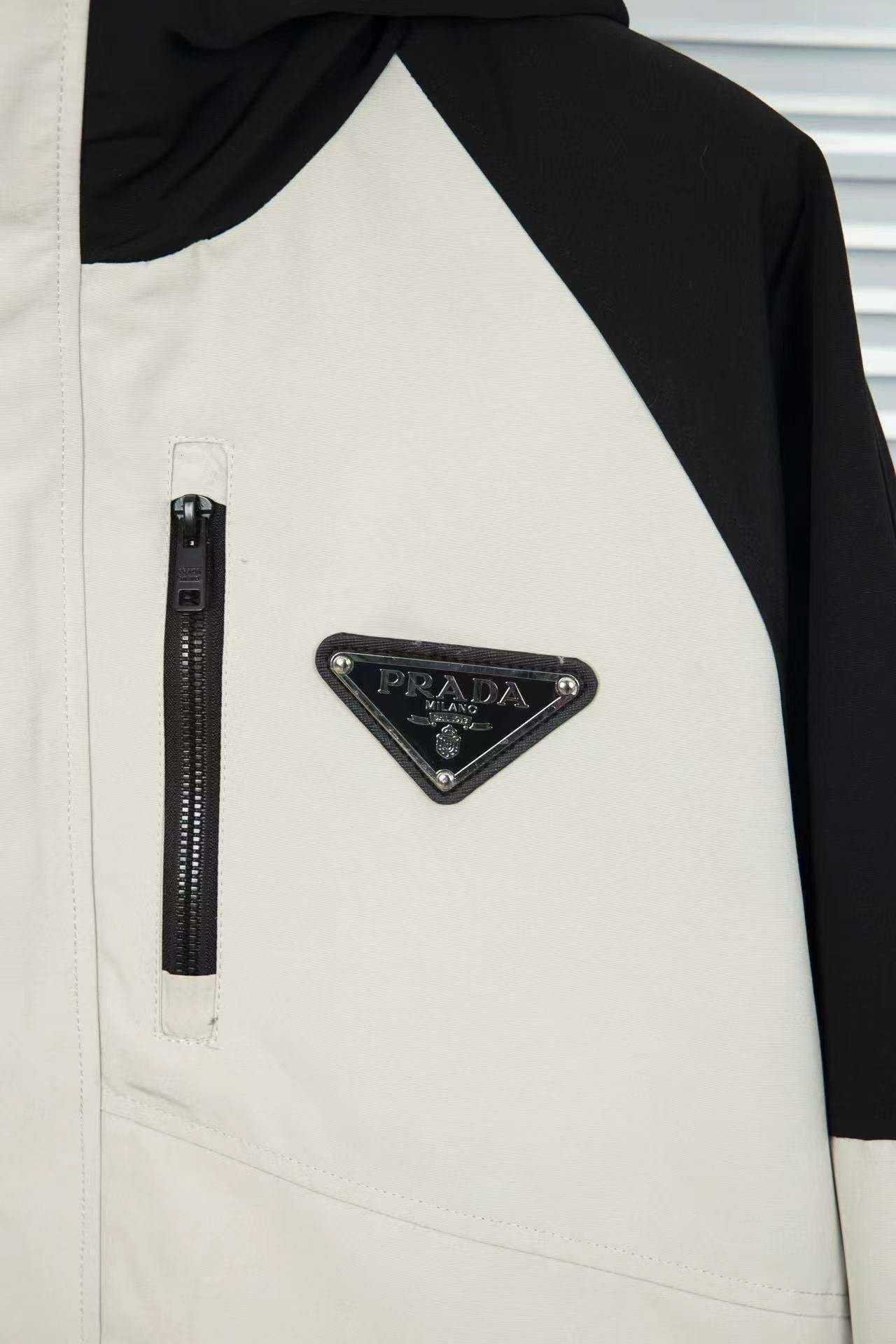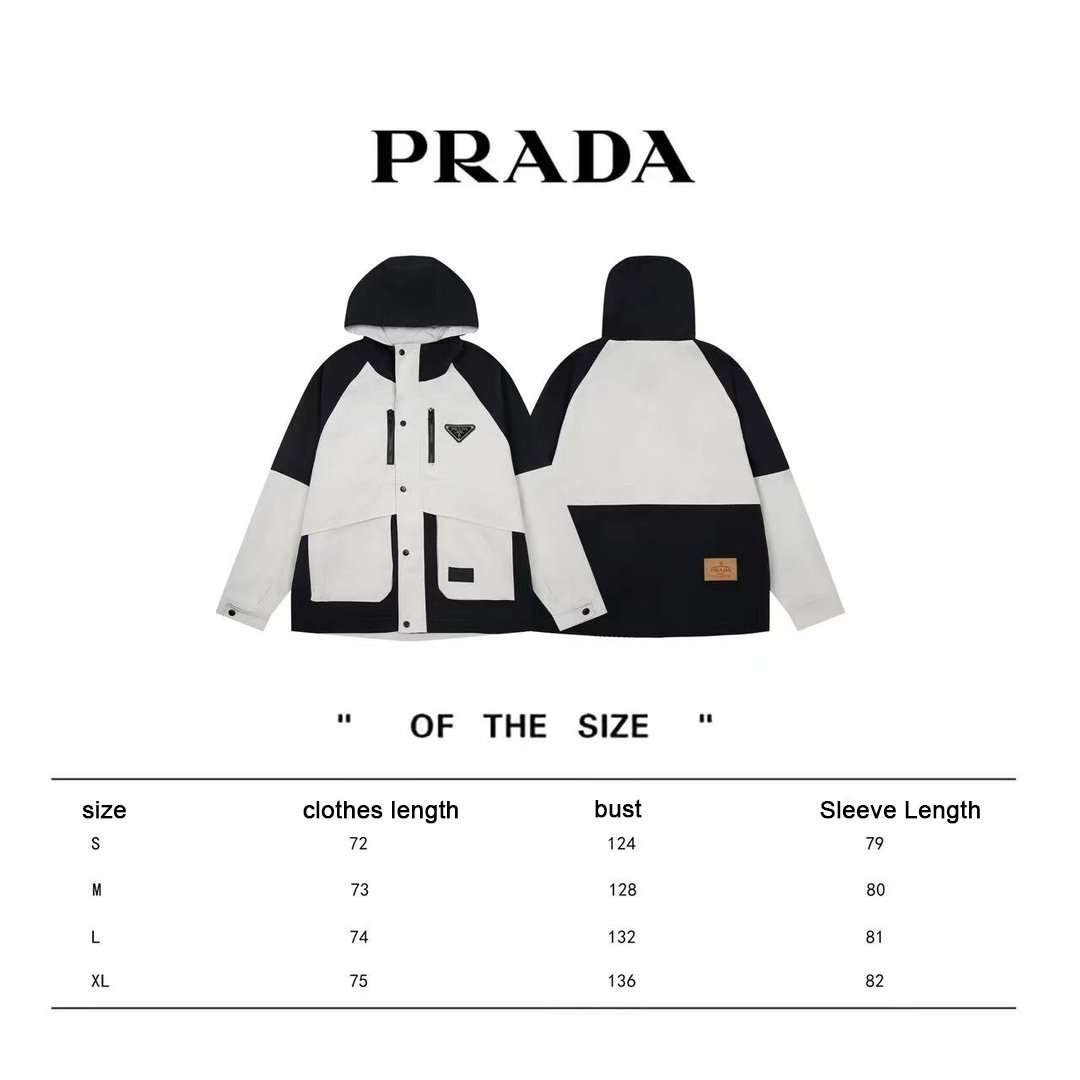 Prada hooded patchwork coat.