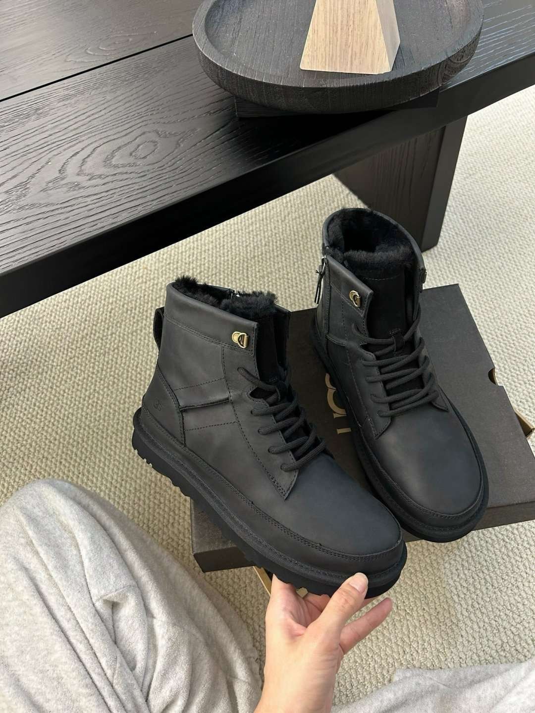 UGG autumn and winter new men’s cow leather wool work boots upper cow wax leather lining wool material